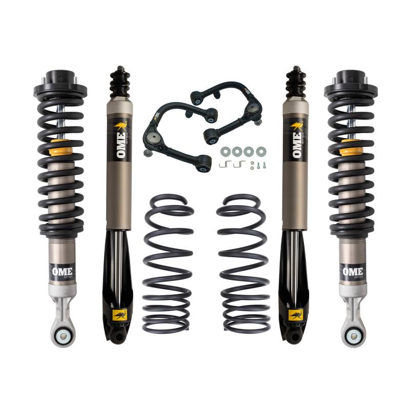 Old Man Emu offers a range of tuned and matched integrated suspension kits to ensure the right suspension is selected for how the vehicle is outfitted and the conditions it will encounter. Old Man Emu suspension systems are designed to enhance ride quality, ride control, load-carrying capacity, and ride height. When building an off-road vehicle, it's best to notate the heavy parts that you plan to add. Heavy components will slowly begin to compress your suspension which results in vehicle sag. Choosing an Old Man Emu integrated suspension kit will avoid sag and ride discomfort as our engineers have tuned and matched suspension components for an range of different weights. This suspension lift kit comes with Old Man Emu MT64 shocks. The MT64 shocks are engineered to handle every challenge, from demanding overlanding trips to the daily commute and every custom build in between, the MT64's huge 2.8in aluminum body and vehicle-specific damping ensure optimal performance across any terrain. This suspension lift kit is tuned and matched for the Toyota Tacoma to provide 3in of lift in the front, with a weight of 220-330lbs and provide 2in of lift in the rear with a weight of 440lbs. This kit includes upgraded upper control arms.
