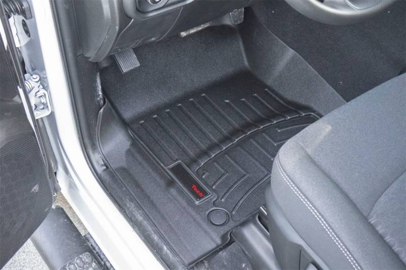 The WeatherTech FloorLiner DigitalFit accurately and completely lines the interior carpet giving absolute interior protection. Digital laser measurements of interior surfaces offer a consistently perfect fit. A HighDensity TriExtruded (HDTE) material allows for a rigid core for strength while offering surface friction to the carpet, as well as tactile feel to the surface. Advanced surfacing creates channels that carry fluids and debris to a lower reservoir with further channeling to help minimize fluid movement while driving. Once fluids become trapped in the reservoir, away from shoes and clothing, they are easily removed from the WeatherTech FloorLiner DigitalFit over the door sill. No muss-no fuss.
