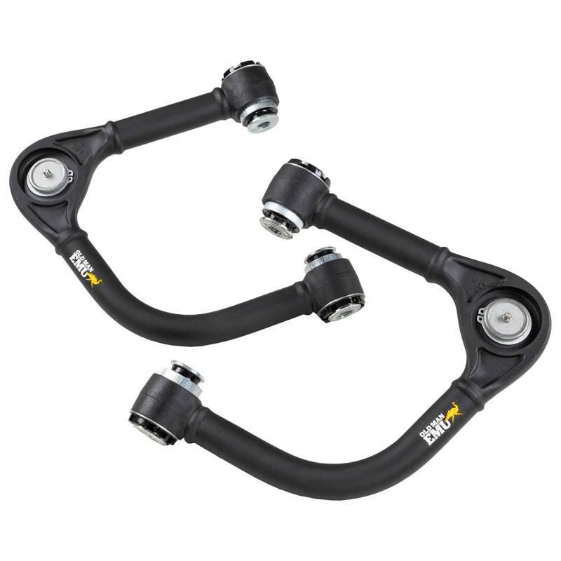 +2.5 and +3.5 degrees of caster and 1.5 negative degrees camber based on a 2 inch lift. A wheel alignment is required after installation and fender clearance should be checked when the vehicle is fitted with aftermarket tires and wheels. Upper control arms can be found on independent front suspension (IFS) vehicles, acting as the middleman between the vehicle frame and knuckle spindle. Front upper control arms are designed to keep the front wheels aligned, limit articulation, and ensure optimum handling on and off-road. Old Man Emu Upper Control Arms bring the alignment cams back into an acceptable range