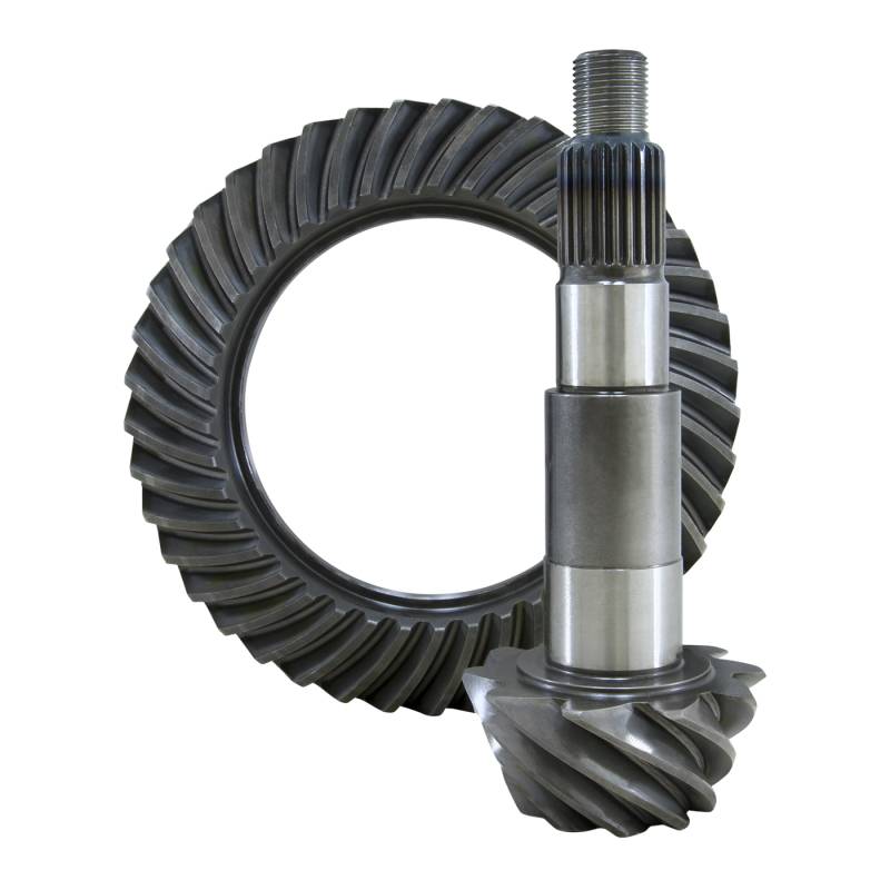 Yukon Gear & Axle high-performance ring and pinion gear sets are the benchmark of quality in the automotive gear industry. Yukon engineers use state-of-the art design, advanced heat-treating techniques, and leading-edge quality testing processes to ensure the structure and surface finish meet exacting specifications and quality standards. Yukon offers its Y.E.S. Plan, a lifetime, comprehensive, no-questions-asked protection plan covering your gear set for as long as you own your vehicle. Whether you've added tons of horsepower under the hood, upgraded to bigger tires, are just want to optimize the traction performance of your ride, Yukon offers the widest selection of gear ratios on the market to accommodate every need. Yukon Gear & Axle high-performance ring and pinion gear sets are the benchmark of quality in the automotive gear industry. Yukon engineers use state-of-the art design, advanced heat-treating techniques, and leading-edge quality testing processes to ensure the structure and surface finish meet exacting specifications and quality standards. Yukon offers its Y.E.S. Plan, a lifetime, comprehensive, no-questions-asked protection plan covering your gear set for as long as you own your vehicle. Whether you’ve added tons of horsepower under the hood, upgraded to bigger tires, are just want to optimize the traction performance of your ride, Yukon offers the widest selection of gear ratios on the market to accommodate every need. Yukon Gear & Axle high performance ring & pinions set the standard for quality. Yukon Engineers use state-of-the art design & testing processes, backed by 2 in-house quality labs to ensure each item manufactured meets exacting specifications & quality standards. Yukon designed gear tooth surface finish reduces both friction & heat for long races & high torque conditions. We use high grade steel in both the ring & pinion, with fitment designed to OEM specs. Go ahead, add loads of horsepower & go big on tires because Yukon offers the widest selection of gear ratios to choose from. You?ll know that your gear choice was the right one, because you chose Yukon. Yukon Ring & Pinions come with a 1 year warranty against manufacture defects. Yukon offers a Y.E.S. Plan for a lifetime, comprehensive, no-questions-asked protection plan covering your gears for as long as you own the vehicle.
