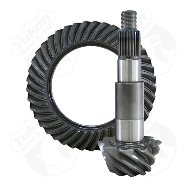 Yukon Gear & Axle high-performance ring and pinion gear sets are the benchmark of quality in the automotive gear industry. Yukon engineers use state-of-the art design, advanced heat-treating techniques, and leading-edge quality testing processes to ensure the structure and surface finish meet exacting specifications and quality standards. Yukon offers its Y.E.S. Plan, a lifetime, comprehensive, no-questions-asked protection plan covering your gear set for as long as you own your vehicle. Whether you've added tons of horsepower under the hood, upgraded to bigger tires, are just want to optimize the traction performance of your ride, Yukon offers the widest selection of gear ratios on the market to accommodate every need. Yukon Gear & Axle high-performance ring and pinion gear sets are the benchmark of quality in the automotive gear industry. Yukon engineers use state-of-the art design, advanced heat-treating techniques, and leading-edge quality testing processes to ensure the structure and surface finish meet exacting specifications and quality standards. Yukon offers its Y.E.S. Plan, a lifetime, comprehensive, no-questions-asked protection plan covering your gear set for as long as you own your vehicle. Whether you’ve added tons of horsepower under the hood, upgraded to bigger tires, are just want to optimize the traction performance of your ride, Yukon offers the widest selection of gear ratios on the market to accommodate every need. Yukon Gear & Axle high performance ring & pinions set the standard for quality. Yukon Engineers use state-of-the art design & testing processes, backed by 2 in-house quality labs to ensure each item manufactured meets exacting specifications & quality standards. Yukon designed gear tooth surface finish reduces both friction & heat for long races & high torque conditions. We use high grade steel in both the ring & pinion, with fitment designed to OEM specs. Go ahead, add loads of horsepower & go big on tires because Yukon offers the widest selection of gear ratios to choose from. You?ll know that your gear choice was the right one, because you chose Yukon. Yukon Ring & Pinions come with a 1 year warranty against manufacture defects. Yukon offers a Y.E.S. Plan for a lifetime, comprehensive, no-questions-asked protection plan covering your gears for as long as you own the vehicle.