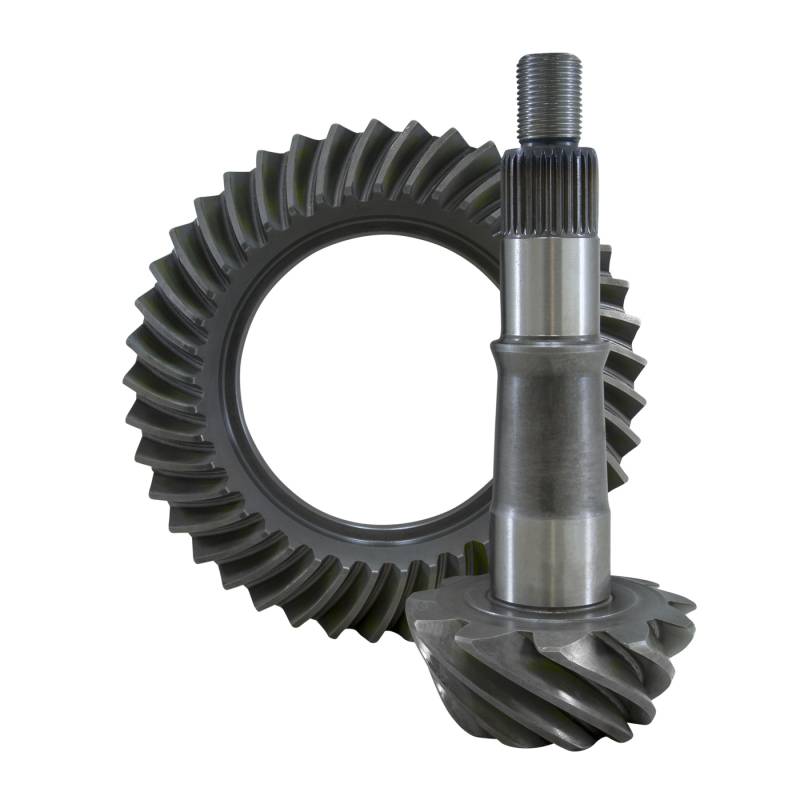 Yukon Gear & Axle high-performance ring and pinion gear sets are the benchmark of quality in the automotive gear industry. Yukon engineers use state-of-the art design, advanced heat-treating techniques, and leading-edge quality testing processes to ensure the structure and surface finish meet exacting specifications and quality standards. Yukon offers its Y.E.S. Plan, a lifetime, comprehensive, no-questions-asked protection plan covering your gear set for as long as you own your vehicle. Whether you've added tons of horsepower under the hood, upgraded to bigger tires, are just want to optimize the traction performance of your ride, Yukon offers the widest selection of gear ratios on the market to accommodate every need. Yukon Gear & Axle high-performance ring and pinion gear sets are the benchmark of quality in the automotive gear industry. Yukon engineers use state-of-the art design, advanced heat-treating techniques, and leading-edge quality testing processes to ensure the structure and surface finish meet exacting specifications and quality standards. Yukon offers its Y.E.S. Plan, a lifetime, comprehensive, no-questions-asked protection plan covering your gear set for as long as you own your vehicle. Whether you’ve added tons of horsepower under the hood, upgraded to bigger tires, are just want to optimize the traction performance of your ride, Yukon offers the widest selection of gear ratios on the market to accommodate every need. Yukon Gear & Axle high performance ring & pinions set the standard for quality. Yukon Engineers use state-of-the art design & testing processes, backed by 2 in-house quality labs to ensure each item manufactured meets exacting specifications & quality standards. Yukon designed gear tooth surface finish reduces both friction & heat for long races & high torque conditions. We use high grade steel in both the ring & pinion, with fitment designed to OEM specs. Go ahead, add loads of horsepower & go big on tires because Yukon offers the widest selection of gear ratios to choose from. You?ll know that your gear choice was the right one, because you chose Yukon. Yukon Ring & Pinions come with a 1 year warranty against manufacture defects. Yukon offers a Y.E.S. Plan for a lifetime, comprehensive, no-questions-asked protection plan covering your gears for as long as you own the vehicle.