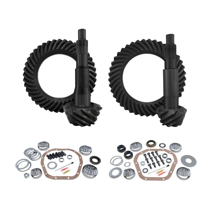 Yukon Gear Kits combine all the parts you need for your re-gear project. It delivers front and rear ring and pinion gear sets and the proper Yukon Master Overhaul Kits in one single part number. Yukon Gear & Axle high-performance ring and pinion gear sets are the benchmark of quality in the automotive gear industry. Yukon engineers use state-of-the art design, advanced heat-treating techniques, and leading-edge quality testing processes to ensure the structure and surface finish meet exacting specifications and quality standards. Yukon offers its Y.E.S. Plan, a lifetime, comprehensive, no-questions-asked protection plan covering your gear set kit for as long as you own your vehicle. If you are thinking about increasing tire size, looking for more towing power, enhancing off-road prowess, or just replacing worn gears, these convenient combo kits have everything your vehicle will need.
