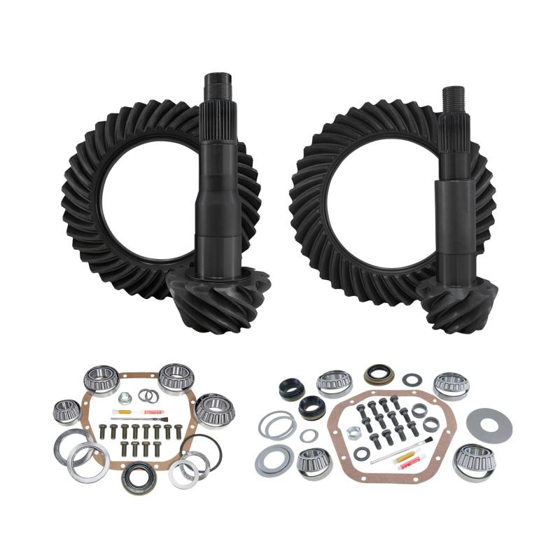 Yukon Gear Kits combine all the parts you need for your re-gear project. It delivers front and rear ring and pinion gear sets and the proper Yukon Master Overhaul Kits in one single part number. Yukon Gear & Axle high-performance ring and pinion gear sets are the benchmark of quality in the automotive gear industry. Yukon engineers use state-of-the art design, advanced heat-treating techniques, and leading-edge quality testing processes to ensure the structure and surface finish meet exacting specifications and quality standards. Yukon offers its Y.E.S. Plan, a lifetime, comprehensive, no-questions-asked protection plan covering your gear set kit for as long as you own your vehicle. If you are thinking about increasing tire size, looking for more towing power, enhancing off-road prowess, or just replacing worn gears, these convenient combo kits have everything your vehicle will need.