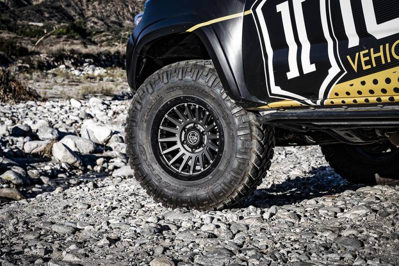 Any hardcore off-road enthusiast knows the numerous benefits that lower tire pressures offer such as improved ride quality and a larger contact patch for increased traction. However, low pressures also increase the risk of de-beading the tire during extreme side loads or aggressive driving. While traditional bead lock wheels address this issue by clamping the tire’s bead, they also need frequent maintenance, require specialty tools/parts, increase rotational mass, and are NOT legal for on-road use. During an accelerated R&D process ICON engineers subjected the Recon PRO to thousands of miles of real-world abuse throughout harsh and unforgiving environments. After on-vehicle testing was concluded, the Recon PRO was sent to an independent contractor for precise lab testing, specifically the FMVSS No.139 Tire Bead Unseat Resistance Test (modified to 10 psi). Results from multiple tests validated the effectiveness of ICON’s InnerLock technology by exceeding the mechanical limits of the machine (over 7600lbs load) without ever de-beading the tire. Staying true to the ICON Alloys approach, the Recon PRO has been engineered to maximize caliper clearance and optimize wheel position for un-hindered suspension travel and steering function. Backspace and wheel offset dimensions have been strategically developed to reduce scrub radius, improving all-around handling and ride quality. The Recon PRO has also been strength tested to yield a 4,000lb load rating - making it one of the strongest wheel options on the market. With build features such as these, it's clear that a set of ICON Alloys wheels is the perfect complement to any truck, Jeep, or SUV. The ICON Alloys Recon PRO with patented InnerLock technology offers the best of both worlds by using a robust bead retention system to keep the tire bead secured to the wheel while also being fully DOT compliant. This provides confidence in knowing that your wheels are prepared to tackle whatever situation you encounter - on or off the beaten path. InnerLock is ready for any type of terrain and every single adventure. The included high-grade aluminum, removable, and replaceable HALO Wheel Armor keeps the wheel looking new by protecting the Recon Pro from trail rash. This HALO Wheel Armor is replaceable in 90° segments so individual sections can be changed if only a portion of the ring becomes damaged. Beyond superior form and function the HALO Wheel Armor can be easily customized to match your style for a truly unique wheel experience.