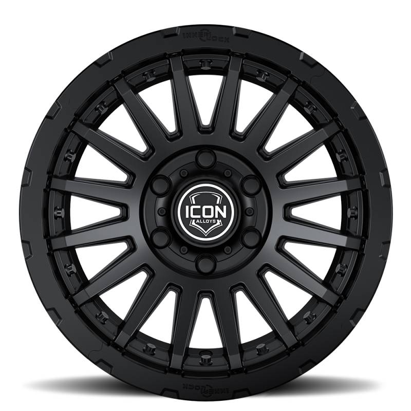 Any hardcore off-road enthusiast knows the numerous benefits that lower tire pressures offer such as improved ride quality and a larger contact patch for increased traction. However, low pressures also increase the risk of de-beading the tire during extreme side loads or aggressive driving. While traditional bead lock wheels address this issue by clamping the tire’s bead, they also need frequent maintenance, require specialty tools/parts, increase rotational mass, and are NOT legal for on-road use. During an accelerated R&D process ICON engineers subjected the Recon PRO to thousands of miles of real-world abuse throughout harsh and unforgiving environments. After on-vehicle testing was concluded, the Recon PRO was sent to an independent contractor for precise lab testing, specifically the FMVSS No.139 Tire Bead Unseat Resistance Test (modified to 10 psi). Results from multiple tests validated the effectiveness of ICON’s InnerLock technology by exceeding the mechanical limits of the machine (over 7600lbs load) without ever de-beading the tire. Staying true to the ICON Alloys approach, the Recon PRO has been engineered to maximize caliper clearance and optimize wheel position for un-hindered suspension travel and steering function. Backspace and wheel offset dimensions have been strategically developed to reduce scrub radius, improving all-around handling and ride quality. The Recon PRO has also been strength tested to yield a 3,200lb load rating - making it one of the strongest wheel options on the market. With build features such as these, it's clear that a set of ICON Alloys wheels is the perfect complement to any truck, Jeep, or SUV. The ICON Alloys Recon PRO with patented InnerLock technology offers the best of both worlds by using a robust bead retention system to keep the tire bead secured to the wheel while also being fully DOT compliant. This provides confidence in knowing that your wheels are prepared to tackle whatever situation you encounter - on or off the beaten path. InnerLock is ready for any type of terrain and every single adventure. The included high-grade aluminum, removable, and replaceable HALO Wheel Armor keeps the wheel looking new by protecting the Recon Pro from trail rash. This HALO Wheel Armor is replaceable in 90° segments so individual sections can be changed if only a portion of the ring becomes damaged. Beyond superior form and function the HALO Wheel Armor can be easily customized to match your style for a truly unique wheel experience.