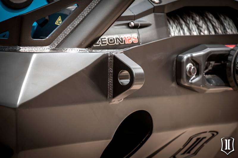 ICON Impact Series Limited Lifetime WarrantyTackle the toughest trails with the PRO Series Recessed Winch Bumper from ICON! Designed for the ultimate in off-road form and function, PRO Series features a multi-faceted, high-clearance design that sneaks past the tightest rocks. The "stubby" width protects the Jeep's lower grille corners while allowing the front tires maximum room for articulation and access to grip and pull the vehicle over steep obstacles. The integrated, recessed winch mount places the winch low, achieving a lower center of gravity as well as increased airflow through the radiator. The winch fairlead mount is integrated right into the front surface of the bumper. If you do manage to get yourself into a tight spot, recovery is aided by a pair of extreme duty recovery shackle tabs, CNC machined from beefy 1" thick plate steel. And like the rest of the PRO Series bumper, even the recovery tabs are angled for maximum clearance. Recessed light mounts protect either the Jeep's stock fog lamps or your favorite aftermarket LED lights. The bumper is fabricated from CNC laser cut, precision brake-formed 3/16 plate steel and the Impact Bar is made of 1-3/4" DOM tubing, with plate steel gussets. The bumper looks as great as it performs, with a durable, semi-gloss black powder coat finish.