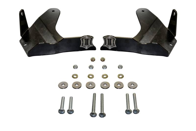 ICON Vehicle Dynamics' bolt-on skid plate system offers the ultimate in lower control arm protection for both on and off-road use. Reduce the risk of lower arm failure during everyday driving, running off-road trails, getting to your favorite hunting or fishing spot, or crawling in mountainous terrain. This skid plate system will allow you to slide over rocks and debris all while helping to protect your lower arms from trip-ending damage. Made from 3/16" laser cut steel, our lower arm skid plates offer extreme durability and a precision fit for easy installation. The ICON bolt on skid plate system also serves as a locator for the lower shock mount for our S2 Modular Performance Shock System. This modular approach allows you to install these skid plates without waste if you decide to upgrade and add the full S2 system down the road. You are able to purchase knowing it is 1 of the 3 components you will need to run the S2 Secondary Shock System, giving you the opportunity to build in stages if you choose.