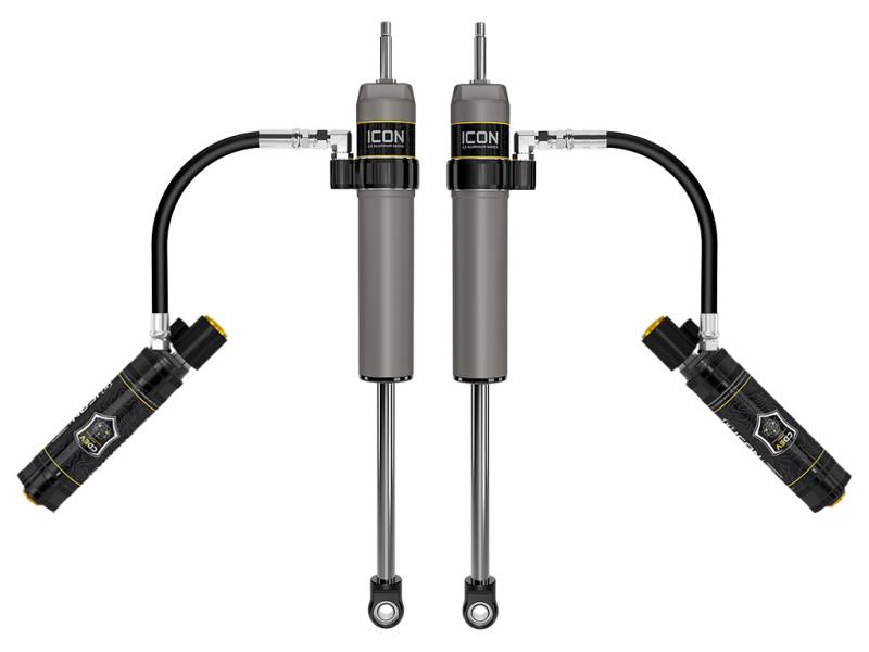 ICON Vehicle Specific (V.S.) 2.5 Aluminum Series shocks are designed and built to give your vehicle outstanding performance off-road and a smooth ride on the street. These shocks are configured specifically for each application in both length and damping tune. Like all ICON'S Shock Absorbers, V.S. 2.5 Aluminum Series shocks are fully rebuildable and re-tunable. For piggyback and specific remote reservoir applications, ICON'S unique use of a 6061-billet aluminum manifold a few inches below the top cap of the shock creates an internal Bump Zone that when used creates an additional 20% of damping force. This additional force helps prevent harsh bottom outs and controls the suspension when compressing at high velocity. The ICON CDE Valve upgrade is included for those desiring an easy way to tune the ride electronically from inside the vehicle. Compression Damping Electronic Valve (CDEV) is an electronically controlled valve that meters the flow of oil to regulate the amount of damping force that is created by the shock when compressed. This infinitely variable valve can react in less than 40ms and has the ability to make extremely precise adjustments for varying terrain. CDEV’s hydraulic circuits are also custom tailored per application to create the highest resolution and dynamic range allowable for each specific vehicle. Powered by ICON Intelligent Control and proprietary ICON mobile app, the system uses information from the onboard G-force sensor and Gyroscope to perform calculations based on algorithms and user-defined settings to predict terrain and adjust shock settings via the CDEV accordingly.