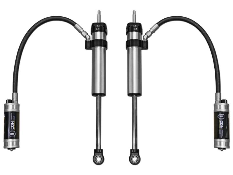 ICON Vehicle Specific (V.S.) 2.5 Aluminum Series shocks are designed and built to give your vehicle outstanding performance off-road and a smooth ride on the street. These shocks are configured specifically for each application in both length and damping tune. Like all ICON'S Shock Absorbers, V.S. 2.5 Aluminum Series shocks are 100% rebuildable and 100% revalveable. For piggyback and specific remote reservoir applications, ICON'S unique use of a 6061 billet aluminum manifold a few inches below the top cap of the shock creates an internal Bump Zone that when used creates an additional 20% of damping force. This additional force helps prevent harsh bottom outs and controls the suspension when compressing at high velocity. The ICON CDC Valve is an externally adjustable valve that restricts oil flow into the reservoir which creates 10 levels of compression damping force ranges. If you are looking for a more user defined tune, consider looking into the Omega Series bypass shocks.