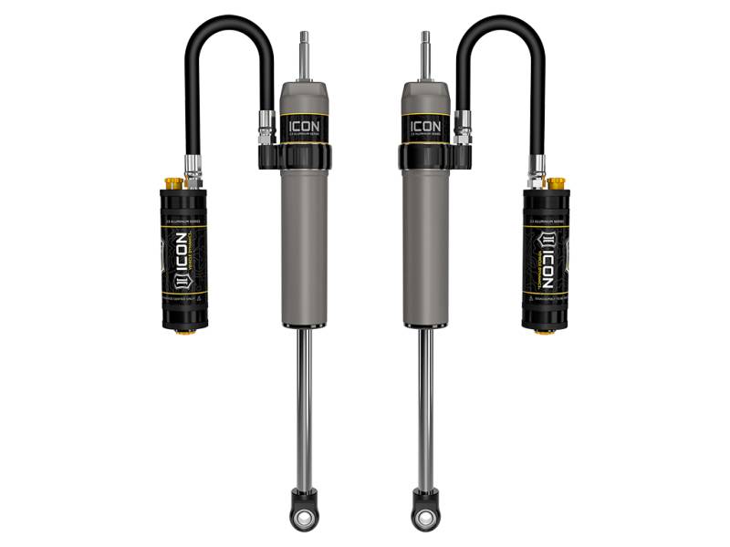 ICON Vehicle Specific (V.S.) 2.5 Aluminum Series shocks are designed and built to give your vehicle outstanding performance off-road and a smooth ride on the street. These shocks are configured specifically for each application in both length and damping tune. Like all ICON'S Shock Absorbers, V.S. 2.5 Aluminum Series shocks are fully rebuildable and re-tunable. For piggyback and specific remote reservoir applications, ICON'S unique use of a 6061-billet aluminum manifold a few inches below the top cap of the shock creates an internal Bump Zone that when used creates an additional 20% of damping force. This additional force helps prevent harsh bottom outs and controls the suspension when compressing at high velocity. The ICON CDC Valve is an externally adjustable valve that restricts oil flow into the reservoir which creates 10 levels of compression damping force ranges.