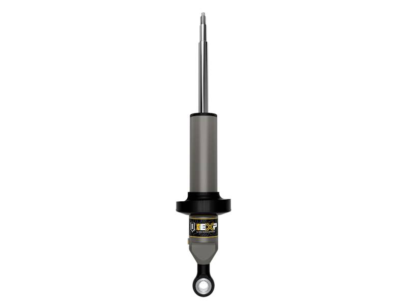 EXP Series shocks utilize a one-piece digressive piston design and are custom tuned for the Tundra in conjunction with their stock front coil springs to maximize damping performance and provide unsurpassed ride quality, on and off-road. The increased piston size and shock oil volume provided by the 2.5-inch diameter aluminum body also provide superior heat dissipation compared to the smaller, steel bodied OE shocks, resulting in longer-lasting shock performance over prolonged use at higher speeds and through rougher terrain. For those who would like to further tune their suspension, EXP shocks are fully re-valvable (and rebuildable) by any qualified shock technician, with parts available from ICON. The 2022-2025 Toyota Tundra/2023-2025 Toyota Sequoia EXP Series front shock absorbers by ICON Vehicle Dynamics combine the performance of a fully rebuildable 2.5-inch diameter premium shock absorber with the convenience and cost-benefits of re-using the truck’s factory coil spring and other components. EXP bridges the gap between spacer lifts and threaded bodied coilovers, providing suspension lift, custom-tuned performance and maximum travel, all in an economical package. EXP Series is based on ICON’s proven 2.5-inch diameter Aluminum Series shock absorber, featuring a one-piece impact-extruded aluminum shock body. Hard anodizing provides a great-looking, consistent finish with superior resistance to abrasion and corrosion. The massive 7/8-inch diameter shaft is induction hardened and chrome plated. EXP shocks use the factory shaft-up orientation, with the shaft ends machined to re-use the Tundra’s OE upper shock and spring mounts. The 6061-billet aluminum coil spring seat is CNC machined to fit the molded heavy duty urethane coil spring seat that is specifically designed to fit the vehicle’s OE coil spring. A series of snap-ring grooves machined into the shock body provide easily-selectable front-end ride height adjustment from 0" to 3” of lift over stock. EXP Series shocks utilize a one-piece digressive piston design and are custom tuned for the Tundra/Sequoia in conjunction with their stock front coil springs to maximize damping performance and provide unsurpassed ride quality, on and off-road. The increased piston size and shock oil volume provided by the 2.5-inch diameter aluminum body also provide superior heat dissipation compared to the smaller, steel bodied OE shocks, resulting in longer-lasting shock performance over prolonged use at higher speeds and through rougher terrain. For those who would like to further tune their suspension, EXP shocks are fully re-valvable (and rebuildable) by any qualified shock technician, with parts available from ICON.