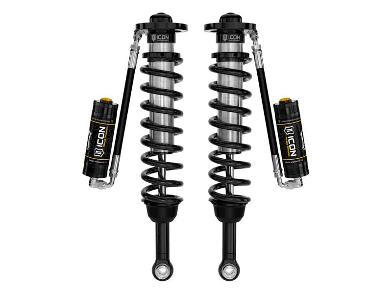 ICON Vehicle Dynamics V.S. 2.5 Series internal reservoir front coilover shocks are an incredible upgrade for the front end of the 2022-2023 Toyota Land Cruiser 300 Series. These adjustable coilovers allow up to 1-3” of lift height adjustability, allowing the use of larger, more aggressive wheel and tire combinations. ICON’s Vehicle-specific shock length and valving along with the larger 2.5” shock body and increased piston area over stock components yield the maximum travel possible along with superior ride quality and suspension performance both on- and off-road. Reservoirs greatly increase shock oil volume and heat dissipation surface area to resist overheating and cavitation under hard use, which can lead to damper fade. When paired with ICON 2.5 Aluminum Series rear shocks vehicle control will be balanced front to rear, resulting in the best overall driving experience for your Toyota Land Cruiser 300 Series.