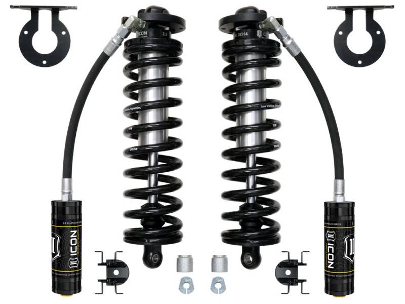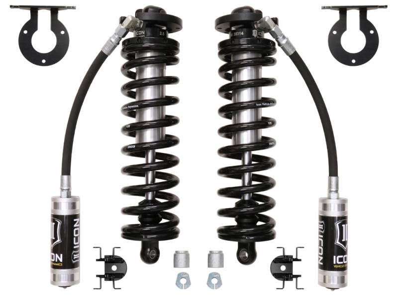 ICON's 2.5 VS Series Remote Reservoir Bolt-In Coilover Conversion Kit will add a new level of performance and adjustability to 2005-2023 F-250 and F-350 pickup trucks. The advantage of utilizing a coilover conversion kit is that they have been designed to increase the overall damping ability of the vehicle while at the same time allowing for user-defined ride height adjustment. The 2.5" Remote Reservoir Coilover featured in these kits is based off of ICON’s 2.5 VS Series shock line - meaning that features like ICON engineered coil springs, FK Rod End bearings, and vehicle-specific valving come standard. Quality machined components and a fully serviceable design make for a product that will stand the test of time, yet retain the ability to be rebuilt or re-valved as necessary. ICON's 2.5 VS Series Remote Reservoir Bolt-In Coilover Conversion Kit will add a new level of performance and adjustability to 2005-UP F-250 and F-350 trucks. The advantage of utilizing a coilover conversion kit is that they have been designed to increase the overall damping ability of the vehicle while at the same time allowing for user-defined ride height adjustment. The 2.5" Remote Reservoir Coilover featured in these kits is based off of ICON’s 2.5 VS Series shock line - meaning that features like Eibach coil springs, FK Rod End bearings, and vehicle-specific valving come standard. Quality machined components and a fully serviceable design make for a product that will stand the test of time, yet retain the ability to be rebuilt or revalved as necessary.