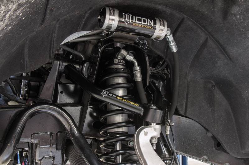 The ICON Vehicle Dynamics V.S. Series 2.5” remote reservoir coilover shocks w/ CDCV are an incredible upgrade for the front end of the 2015-2022 Colorado / Canyon truck. ICON’s Vehicle-specific valving provides a sport tuned feel on and off-road while offering 1.75-3” of lift height adjustability for use of larger, more aggressive wheel and tire combinations. ICON's larger 2.5” shock body and increased piston area over stock components provides improved damping ability and outstanding ride characteristics across varying types of terrain. Remote reservoirs ensure optimum performance by increasing the duration of consistent damping regardless of situation, keeping the shocks at a cooler operating temperature during heavy use. The ICON CDC Valve upgrade is included for those desiring an easy way to tune the ride externally with 10 settings from soft to hard. When paired with ICON rear 2.0 Aluminum Series or 2.5 Series shocks, vehicle control will be balanced front to rear resulting in the best overall driving experience for your Colorado / Canyon. The ICON Vehicle Dynamics V.S. Series 2.5” remote reservoir coilover shocks w/ CDCV are an incredible upgrade for the front end of the 2015-Up Colorado / Canyon truck. ICON’s Vehicle-specific valving provides a sport tuned feel on and off-road while offering 1.75-3” of lift height adjustability for use of larger, more aggressive wheel and tire combinations. ICON's larger 2.5” shock body and increased piston area over stock components provides improved damping ability and outstanding ride characteristics across varying types of terrain. Remote reservoirs ensure optimum performance by increasing the duration of consistent damping regardless of situation, keeping the shocks at a cooler operating temperature during heavy use. The ICON CDC Valve upgrade is included for those desiring an easy way to tune the ride externally with 10 settings from soft to hard. When paired with ICON rear 2.0 Aluminum Series or 2.5 Series shocks, vehicle control will be balanced front to rear resulting in the best overall driving experience for your Colorado / Canyon.