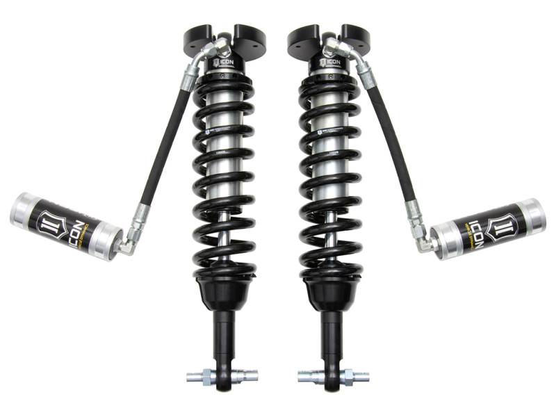 The ICON Vehicle Dynamics V.S. 2.5 Series remote reservoir coilover shocks are an incredible upgrade for the front end of the 2019-2023 GM Silverado/Sierra 1500. ICON’s Vehicle-specific valving provides a sport tuned feel on and off-road while offering 1.5-3.5” of lift height adjustability for use of larger, more aggressive wheel and tire combinations. ICON's larger 2.5” shock body and increased piston area over stock components provides improved damping ability and outstanding ride characteristics across varying types of terrain. Remote reservoirs ensure optimum performance by increasing the duration of consistent damping regardless of situation, keeping the shocks at a cooler operating temperature during heavy use. When paired with ICON 2.0 Aluminum Series or 2.5 Series rear shocks, vehicle control will be balanced front to rear resulting in the best overall driving experience for your GM truck. The ICON Vehicle Dynamics V.S. 2.5 Series remote reservoir coilover shocks are an incredible upgrade for the front end of the 2019-UP GM Silverado/Sierra 1500. ICON’s Vehicle-specific valving provides a sport tuned feel on and off-road while offering 1.5-3.5” of lift height adjustability for use of larger, more aggressive wheel and tire combinations. ICON's larger 2.5” shock body and increased piston area over stock components provides improved damping ability and outstanding ride characteristics across varying types of terrain. Remote reservoirs ensure optimum performance by increasing the duration of consistent damping regardless of situation, keeping the shocks at a cooler operating temperature during heavy use. When paired with ICON 2.0 Aluminum Series or 2.5 Series rear shocks, vehicle control will be balanced front to rear resulting in the best overall driving experience for your GM truck.