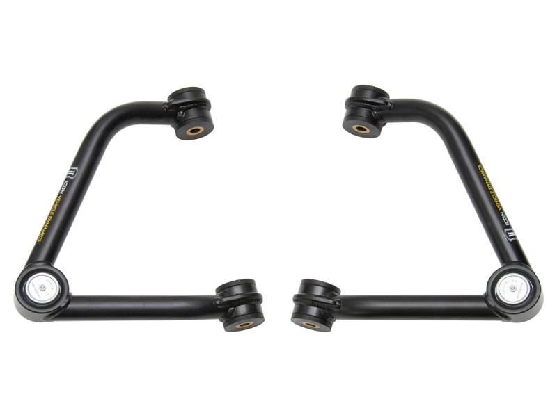 Take the performance of your 2019-2024 GM Silverado/Sierra 1500 pickup or 2021-2023 GM SUV to new levels with the ICON Vehicle Dynamics Delta Joint tubular upper control arm kit. All ICON tubular upper control arms are constructed from CNC bent 1026 DOM steel tubing and then powder coated to a semi-gloss black finish for maximum strength and corrosion resistance. ICON upper control arms are engineered with built-in caster correction for optimal alignment specifications and confidence inspiring handling. A main benefit of ICON upper control arms is the potential for increased wheel travel when paired with our 2.5 Series coilovers, translating into superior performance and ride quality for your vehicle. These upper control arms feature ICON's patented Delta Joint. The Delta Joint is a heavy-duty high angle ball joint that combines the durability of a ball joint with the performance characteristics of a traditional uniball. While the industry standard uniball does a great job of allowing the control arms of a vehicle to articulate with little bind, they do have an inherent weakness that leaves more to be desired when used in a daily driven application - exposure to the elements. The Delta Joint features a zinc plated housing providing the first layer of corrosion resistance, while a tough grease seal keeps potentially harmful elements out of the inner workings of the joint. Metal on metal construction and a greaseable design increase the longevity of the Delta Joint while at the same time allowing for noise-free operation. What makes the Delta Joint unique is that it brings the best of both worlds to ICON upper control arms with features that make it more robust than a uniball, and at the same time capable of greater angularity than a typical ball joint. These upper control arms feature ICON's patented Delta Joint. The Delta Joint is a heavy duty high angle ball joint that combines the durability of a ball joint with the performance characteristics of a traditional uniball. While the industry standard uniball does a great job of allowing the control arms of a vehicle to articulate with little bind, they do have an inherent weakness that leaves more to be desired when used in a daily driven application - exposure to the elements. The Delta Joint features a zinc plated housing providing the first layer of corrosion resistance, while a tough grease seal keeps potentially harmful elements out of the inner workings of the joint. Metal on metal construction and a greasable design increase the longevity of the Delta Joint while at the same time allowing for noise-free operation. What makes the Delta Joint unique is that it brings the best of both worlds to ICON upper control arms with features that make it more robust than a uniball, and at the same time capable of greater angularity than a typical ball joint.