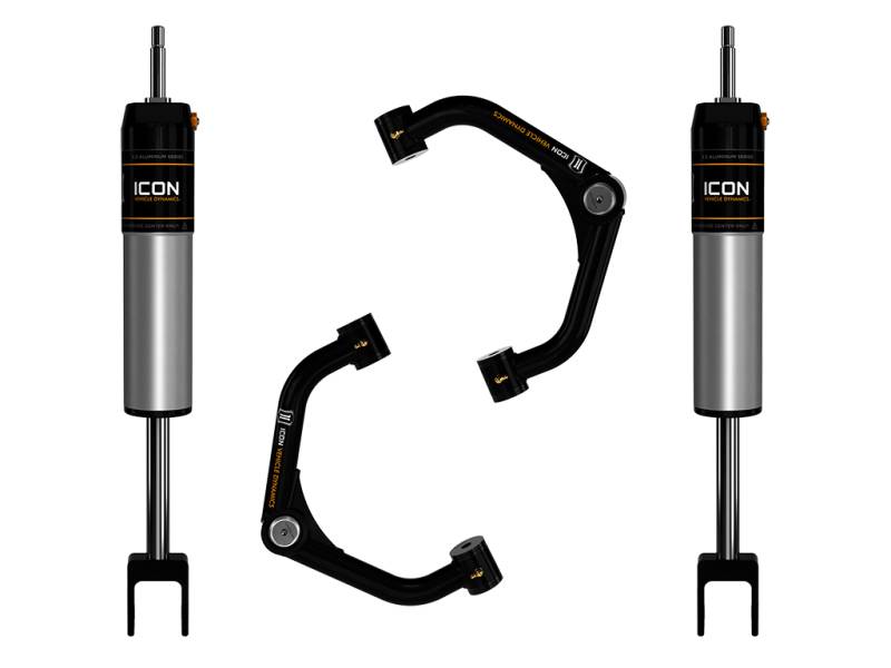 Take the performance of your 2020-Up GM HD truck to new levels with the ICON Vehicle Dynamics Delta Joint tubular upper control arm kit. All ICON tubular upper control arms are constructed from CNC bent 1026 DOM steel tubing and then powder coated to a semi-gloss black finish for maximum strength and corrosion resistance. ICON upper control arms are engineered with built-in caster correction for optimal alignment specifications and confidence inspiring handling. A main benefit of ICON upper control arms is the increased wheel travel when paired with our 2.5 series shock absorbers, this translates into superior performance and ride quality for your 2020-Up GM HD. These upper control arms feature ICON's patented Delta Joint. The Delta Joint is a heavy-duty high angle ball joint that combines the durability of a ball joint with the performance characteristics of a traditional uniball. While the industry standard uniball does a great job of allowing the control arms of a vehicle to articulate with little bind, they do have an inherent weakness that leaves more to be desired when used in a daily driven application - exposure to the elements. The Delta Joint features a zinc plated housing providing the first layer of corrosion resistance, while a tough grease seal keeps potentially harmful elements out of the inner workings of the joint. Metal on metal construction and a greaseable design increase the longevity of the Delta Joint while at the same time allowing for noise-free operation. What makes the Delta Joint unique is that it brings the best of both worlds to ICON upper control arms with features that make it more robust than a uniball, and at the same time capable of greater angularity than a typical ball joint. To ensure compatibility, ICON is no longer offering GM 2500HD/3500HD upper control arms as individual components. Upper control arms can only be purchased in unison with ICON shock absorbers as a complete system. The included ICON Vehicle Specific (V.S.) 2.5 Series shocks are designed and built to give your vehicle outstanding performance off-road and a smooth ride on the street. These shocks are configured specifically for each application in both length and damping tune. Like all ICON'S Shock Absorbers, V.S. 2.5 Series shocks are 100% rebuildable and 100% revalveable. The larger diameter and oil volume of ICON 2.5 IR Series shocks provide better ride quality and heat dissipation properties than the standard 2.0 Aluminum Series IR Shocks. If you are looking for a more user defined tune, consider looking into the Compression Damping Control Valve (CDC Valve) shocks.