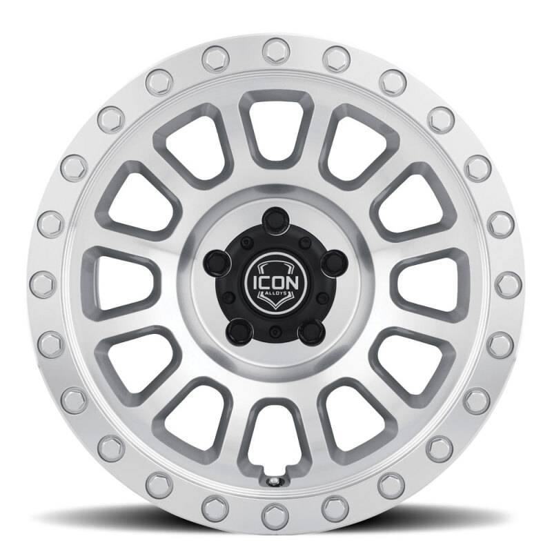 Staying true to the ICON Alloys approach, the Hulse has been engineered to maximize caliper clearance and optimize wheel position for un-hindered suspension travel and steering function. Backspace dimensions and wheel offset have been strategically developed to reduce scrub radius, improving all-around handling and ride quality and making a set of these wheels the perfect complement to an ICON Vehicle Dynamics suspension system. The ICON Alloys Hulse makes a bold statement with its motorsport inspired styling. Hulse features an aggressive concave profile that looks good in the dirt and great in the street. Twelve deep spokes, thick lip and oversized ring bolts will set your rig apart from the rest. Available in aggressive Double Black or eye-catching Silver Machined finishes with fitments available for 6 & 5 lug applications.