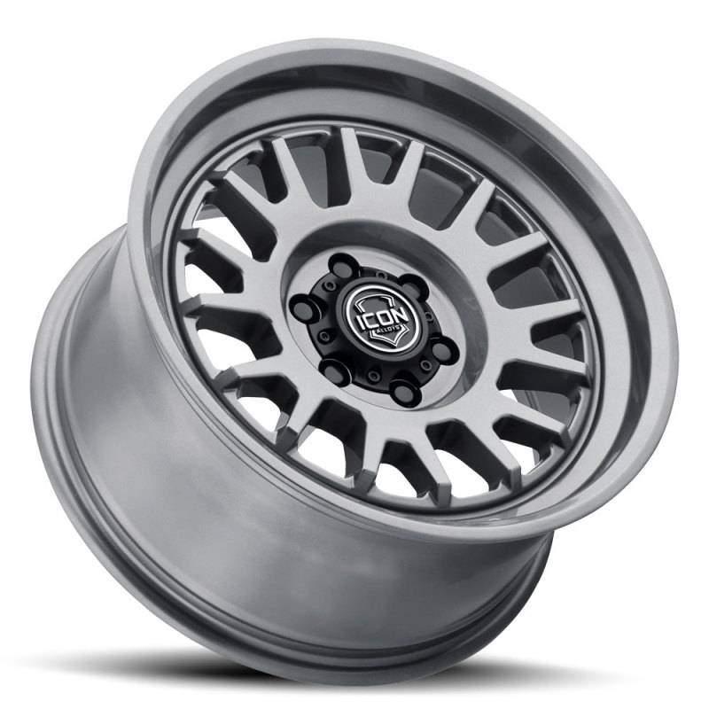 ICON Anza 17x8.5 6x5.5 0mm Offset 4.75in BS 106.1mm Hub Bore Gun Metal Wheel WHEEL
