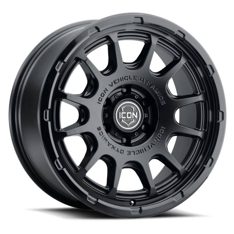 Bring a bold new look to your ride with the ICON Alloys Rancho, a solidly built 20” wheel that will stand up on the street or trail. Available in multiple finishes like stealthy Double Black, slick Satin Bronze with Gloss Black Lip, and an eye-catching Silver Machined with Gloss Black Lip; these wheels will increase both the form and function of your Jeep, truck, or SUV. Staying true to the ICON Alloys approach, the Rancho has been engineered to maximize caliper clearance and optimize wheel position for un-hindered suspension travel and steering function. Backspace dimensions and wheel offset have been strategically developed to reduce scrub radius, improving all-around handling and ride quality and making a set of these wheels the perfect complement to an ICON Vehicle Dynamics suspension system.