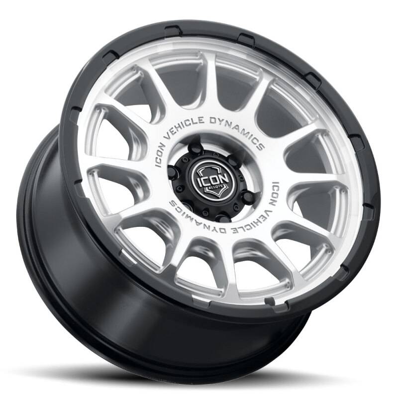 ICON Alloys Rancho 20x9 / 5x5 / -12mm / 4.5in BS Silver Machined w/ Gloss Black Lip Wheel WHEEL