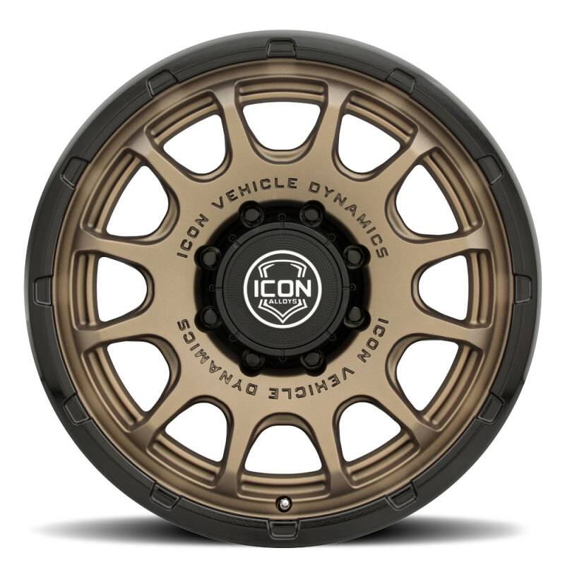 Bring a bold new look to your ride with the ICON Alloys Rancho, a solidly built 20” wheel that will stand up on the street or trail. Available in multiple finishes like stealthy Double Black, slick Satin Bronze with Gloss Black Lip, and an eye-catching Silver Machined with Gloss Black Lip; these wheels will increase both the form and function of your Jeep, truck, or SUV. Staying true to the ICON Alloys approach, the Rancho has been engineered to maximize caliper clearance and optimize wheel position for un-hindered suspension travel and steering function. Backspace dimensions and wheel offset have been strategically developed to reduce scrub radius, improving all-around handling and ride quality and making a set of these wheels the perfect complement to an ICON Vehicle Dynamics suspension system.