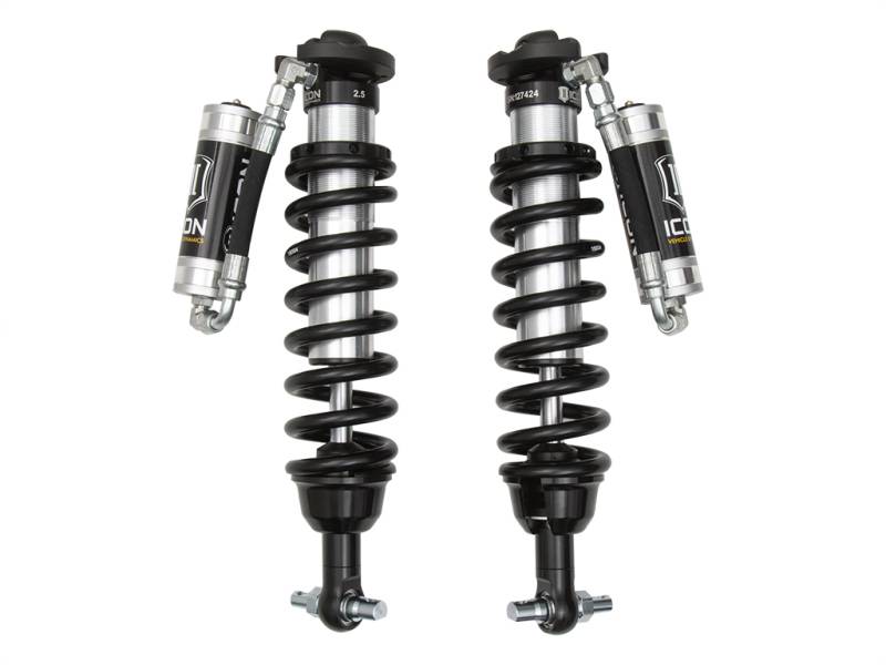 ICON Vehicle Dynamics V.S. Series 2.5” remote reservoir coilover shocks are an incredible upgrade for the front end of the 2019-2023 Ford Ranger. ICON’s Vehicle-specific valving provides a sport tuned feel on and off-road while offering 0-3.5” of lift height adjustability for use of larger, more aggressive wheel and tire combinations. The larger 2.5” shock body and increased piston area over stock components provides improved damping ability and outstanding ride characteristics across varying types of terrain. Remote reservoirs ensure optimum performance by increasing the duration of consistent damping regardless of situation, keeping the shocks at a cooler operating temperature during heavy use. When paired with ICON rear 2.0 Aluminum Series or 2.5" Series shocks, vehicle control will be balanced front to rear resulting in the best overall driving experience for your Ranger. ICON Vehicle Dynamics V.S. Series 2.5” remote reservoir coilover shocks are an incredible upgrade for the front end of the 2019-UP Ford Ranger. ICON’s Vehicle-specific valving provides a sport tuned feel on and off-road while offering 0-3.5” of lift height adjustability for use of larger, more aggressive wheel and tire combinations. The larger 2.5” shock body and increased piston area over stock components provides improved damping ability and outstanding ride characteristics across varying types of terrain. Remote reservoirs ensure optimum performance by increasing the duration of consistent damping regardless of situation, keeping the shocks at a cooler operating temperature during heavy use. When paired with ICON rear 2.0 Aluminum Series or 2.5" Series shocks, vehicle control will be balanced front to rear resulting in the best overall driving experience for your Ranger.