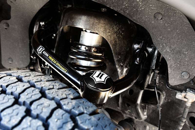 APPLICATION NOTE #129: Will Not Work With Factory Installed Electronically Controlled Suspension APPLICATION NOTE #152: ICON Delta Joint Pro Upper Control Arms Required APPLICATION NOTE #55: Shocks Are Fully Serviceable. Lift Heights Indicated Are For A Stock Equipped Vehicle. Factory Wheels & Tires Fitment: Not compatible with all available OE wheel/tire combinations. Aftermarket wheels with lower offset/less backspace recommended. Recommended Aftermarket Tires: 34" x 12.50" (Larger Tires May Fit but Fender Trimming and Modifications will be Required) Recommended Aftermarket Wheels: ICON Alloys - 17x8.5" w/ 5” Backspace / 6mm Offset Recommended Aftermarket Wheels: ICON Alloys - 18x9" w/ 5.25" Backspace / 6mm Offset Recommended Aftermarket Wheels: ICON Alloys - 20x9" w/ 5.625" Backspace / 16mm Offset TECH NOTE: Models equipped with Power-Stroke diesel engines will have lift height range of 2.25-3" over stock TECH NOTE: Models equipped with PowerBoost hybrid engines will have lift height range of 2.5-3.25" over stock TECH NOTE: Not compatible with F-150 Tremor or F-150 Raptor TECH NOTE: Not compatible with models equipped with BlueCruise TECH NOTE: Only compatible with 4-wheel drive (4WD) models