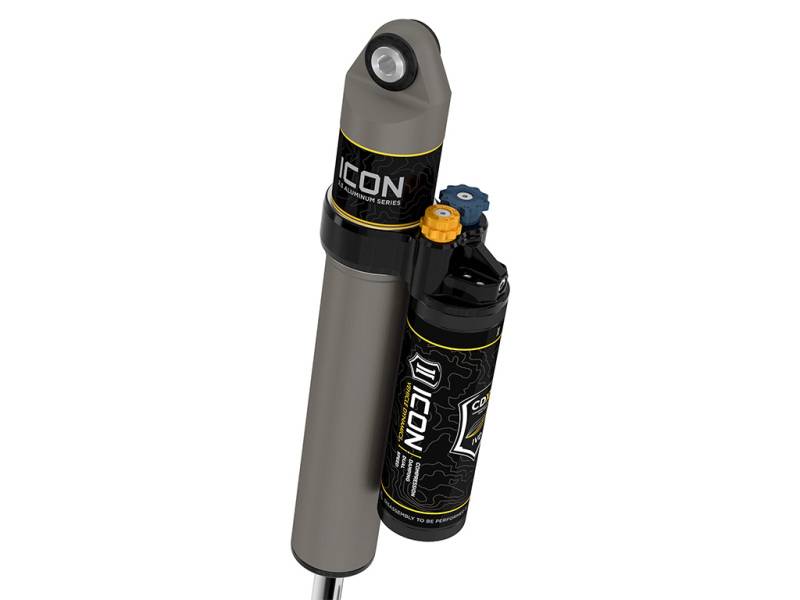 ICON Vehicle Specific (V.S.) 2.5 Aluminum Series shocks with CDCV are designed and built to give your vehicle outstanding performance off-road and a smooth ride on the street. These shocks are configured specifically for each application in both length and damping tune. Like all ICON'S Shock Absorbers, V.S. 2.5 Aluminum Series shocks are 100% rebuildable and 100% revalveable. For piggyback and specific remote reservoir applications, ICON'S unique use of a 6061 billet aluminum manifold a few inches below the top cap of the shock creates an internal Bump Zone that when used creates an additional 20% of damping force. This additional force helps prevent harsh bottom outs and controls the suspension when compressing at high velocity. ICON's exclusive Compression Damping Dual Speed (CDXS) valves are included for precisely dialing in your suspension performance. CDXS controls fluid flow under compression, with independent adjustability of high speed and low speed compression force. 10 discreet detented settings for both low and high-speed adjustment knobs allow separate adjustments for handling response and overall aggressiveness.