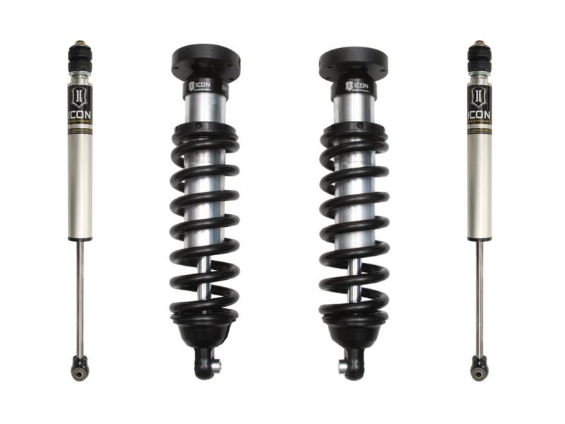 ICON Vehicle Dynamics Toyota Tundra Stage 1 suspension systems are designed with maximum performance and the serious driver in mind. ICON engineers’ primary focus is to increase wheel travel and damping ability, which translates into outstanding vehicle control and ride quality both on and off-road. The Stage 1 system includes vehicle-specific tuned 2.5” coilover shocks featuring an internal reservoir for exceptional cooling properties. These coilovers are also height adjustable from 0-2.5” allowing the use of larger, more aggressive wheel and tire combinations. ICON 2.0 VS Aluminum Series monotube rear shocks utilize a vehicle-specific valving that balances the performance of the truck from front to rear. The ICON Vehicle Dynamics 2000 - 2006 Toyota Tundra Stage 1 suspension system is an excellent choice for those drivers looking to enhance the capabilities of their pickup on the road as well as in the dirt.