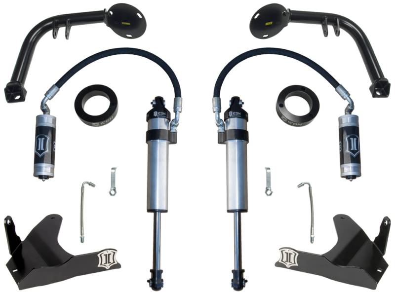 The ICON Vehicle Dynamics S2 Secondary Shock System redefines the off-road capability of the 2005-2015 Toyota Tacoma, 2003-2009 Toyota 4Runner, or 2007-2009 Toyota FJ Cruiser by allowing for the installation of a secondary shock to an existing ICON coilover setup. The addition of a secondary 2.5 Aluminum Series or Omega Bypass shock means rougher terrain and larger off-road obstacles can be overcome with confidence as the damping ability of the vehicle’s suspension is effectively doubled. As opposed to overly complicated and expensive long travel kits, the ICON S2 System is an affordable upgrade that drastically increases off-road performance, is easy to install, and has a modular design that allows Toyota owners to upgrade in steps or all at once. The S2 Secondary Shock System utilizes the factory lower control arms and maintains OE track width while a combination of a billet aluminum shock tower adapters, fabricated shock hoops, and steel skid plates (with incorporated shock mounts) make for a straightforward install with the exceptional build quality you would expect from an ICON Vehicle Dynamics product. The system was designed to eliminate the need for any major alteration of the vehicle’s frame or any other factory suspension components, and the components are 100% removable in case the system is to be installed on another vehicle. The modular design of the S2 kit also allows for standalone installation of the skid plates, which provides the added benefit of protecting the factory lower control arms from potential trail damage that can be experienced while off-road.