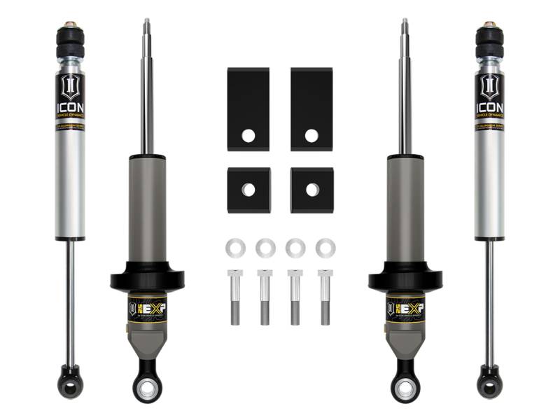 Rounding out the Stage 1 suspension system are V.S. 2.0 Aluminum Series rear shocks specially tailored for the 2022-2025 Tundra. The 2.0 Aluminum Series shocks are a high-quality upgrade for the everyday street driver and weekend warrior looking for improved on and off-road performance. Their pairing with the ICON 2.5 EXP Series front coilovers results in balanced vehicle control from front to rear and an excellent overall driving experience for your Tundra. Rounding out the Stage 1 suspension system are V.S. 2.0 Aluminum Series rear shocks specially tailored for the 2022-Up Tundra. The 2.0 Aluminum Series shocks are a high-quality upgrade for the everyday street driver and weekend warrior looking for improved on and off-road performance. Their pairing with the ICON 2.5 EXP Series front coilovers results in balanced vehicle control from front to rear and an excellent overall driving experience for your Tundra. The ICON Vehicle Dynamics Stage 1 complete suspension system for the 2022-2025 Toyota Tundra represents our entry level performance suspension system, providing improved on- and off-road performance as well as front-end lift and leveling for a proper stance and fitment of up to 35" tires. This system features the innovative new 2.5 EXP series coilover shocks and sway bar drop kit for the front of the truck along with our proven 2.0 nitrogen charged monotube shock with internal reservoir for the rear. The included sway bar drop brackets help minimize sway bar link bind through the suspension travel range. This helps the suspension move more freely and allows for the full range of wheel travel without overstressing any OE components. This Stage 1 system features the 2022-2025 Toyota Tundra EXP Series front shock absorbers that combine the performance of a fully rebuildable 2.5-inch diameter premium shock absorber with the convenience and cost-benefits of re-using the Tundra’s factory coil spring and other components. EXP bridges the gap between spacer lifts and threaded bodied coilovers, providing suspension lift, custom-tuned performance and maximum travel, all in an economical package.
