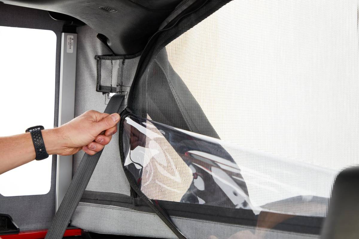 Integrated Sunrider feature allows open air in seconds without having to remove or store panels