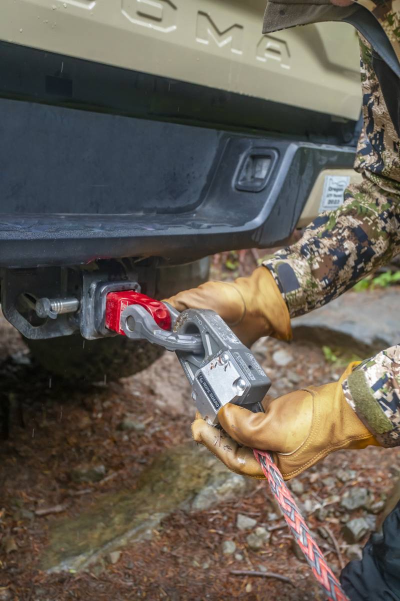 Made from lightweight, super-strong CNC-machined 6000 series aluminum, the HitchLink 2.0 allows you to utilize your vehicle?s 2-inch receiver as a recovery/tow point. Simply slide this shackle mount into the receiver?s opening and secure with a hitch pin (not included). Accommodates a common 3/4? screw pin shackle as well as soft shackles up to 1/2?. Rated at 9,500 lbs. Anodized or powder coated depending on the finish.