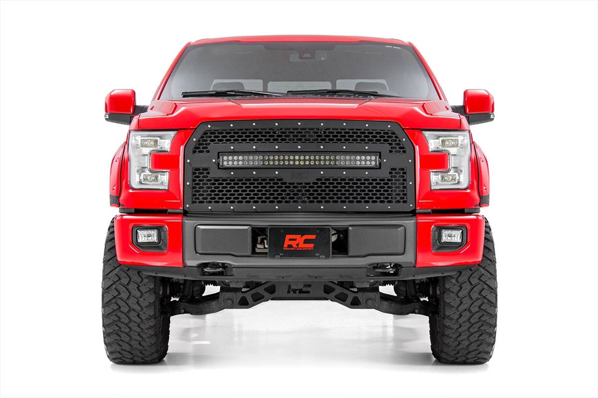 Rough Country - Mesh Grille - 30" Dual Row LED - Black Ser - Ford F-150 2WD/4WD (2015-2017)Mesh Grille - 30" Dual Row LED - Black Ser - Ford F-150 2WD/4WD (2015-2017)