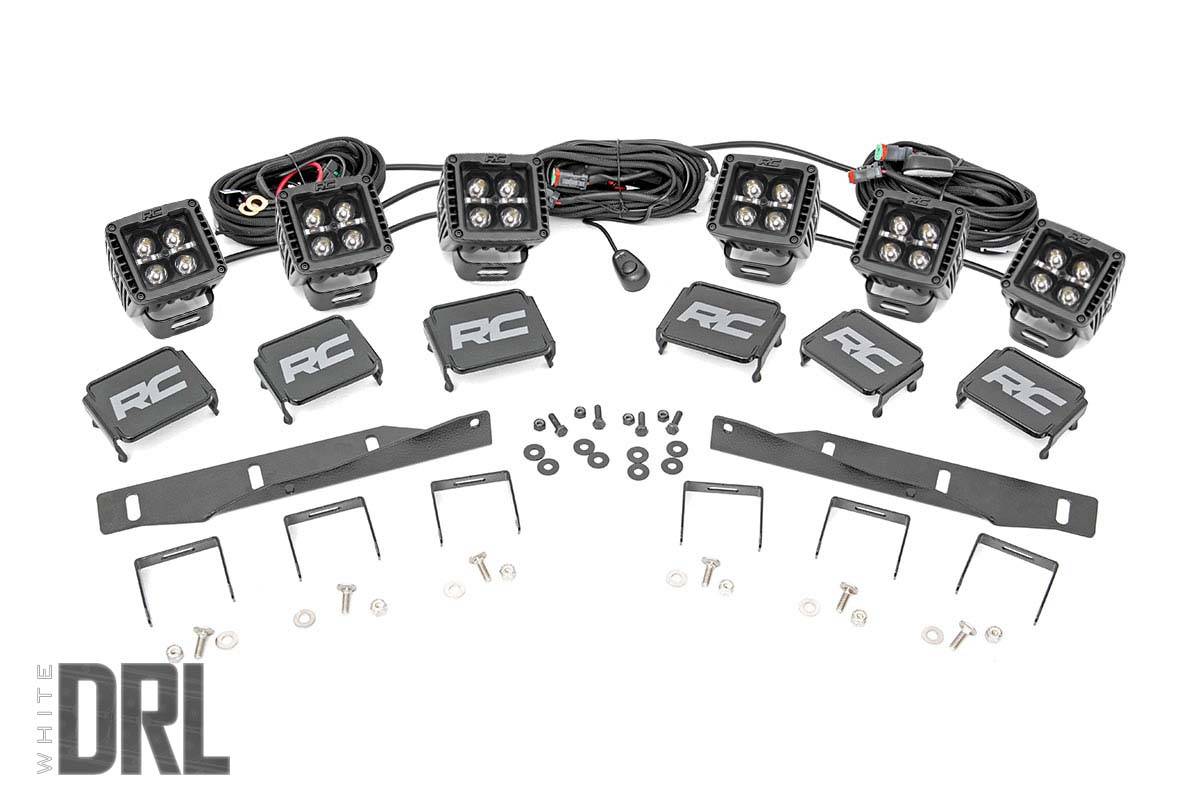 Rough Country - LED Light Kit - Fog Mount - Triple 2" Black Pair - White DRL - Ford Raptor (17-20)LED Light Kit - Fog Mount - Triple 2" Black Pair - White DRL - Ford Raptor (17-20)