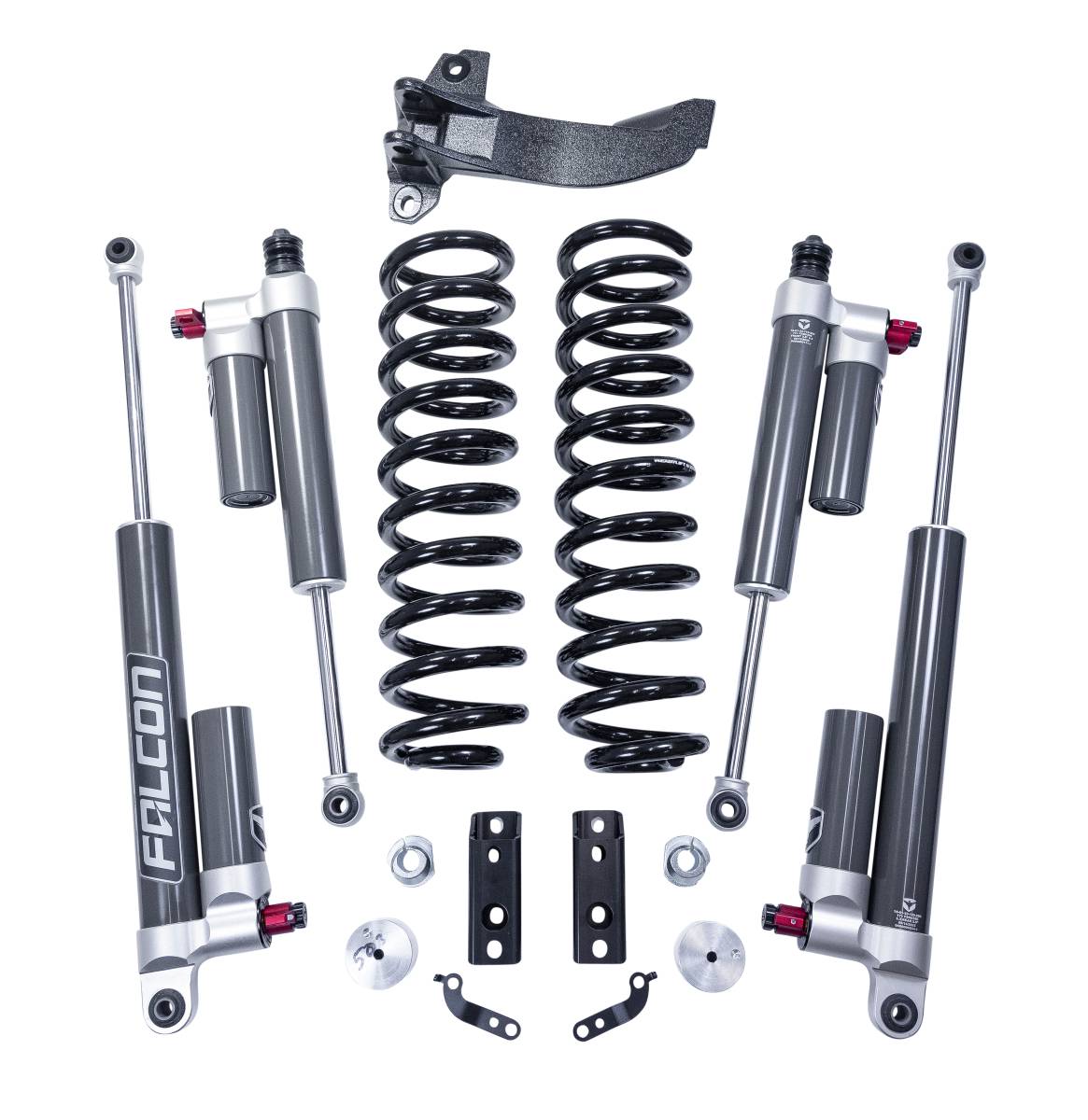 The Game Has Changed. ReadyLIFT, the leader in Super Duty suspension innovation, just redefined what a leveling kit can be. Meet the all-new 2.5" Leveling Suspension System (PN: 46-20255) — engineered from the ground up for hardcore truck owners who demand the ultimate in leveling suspension performance.At its core? The Falcon 3.3 Fast Adjust Monotube Shock System — the gold standard in tunable performance shocks. Combined with heavy-duty coil springs, premium hardware, and a host of essential upgrades, this system is your Super Duty's invitation to dominate any terrain.Why This Kit Is a Must-Have2.5" Premium Leveling Falcon 3.3 Fast Adjust Shocks: Dial in your ride with 3-position main compression control (Soft, Custom, Firm) 8-position Micro Adjust dial for terrain-specific tuning Aggressive Tire Fitment: Run up to 35" tires (or 37" with minor trimming) Bolt-On Simplicity: Full install kit includes sway bar drops, bump stop extensions, and brake line brackets Rugged Ride, Refined Feel: Smooth on-road comfort meets off-road muscle Ultimate Clearance + Commanding Stance: Gain the elevation and confidence to conquer job sites, trails, or towing duty Whether you're hauling heavy loads, chasing adventure, or just want your Super Duty to look and ride like a boss, this is the kit that delivers.Own the Road. Own the Trail. Own the Moment. ReadyLIFT's Falcon-equipped Leveling System is here. Are you?Note for trucks with Onboard Scale: Pair with our Auto-Leveling Headlight Bracket Kit (PN: 67-23210). Tremor owners (MY 2023–2024) will see 1.125" of lift. Some trucks may retain factory track bar bracket for optimal suspension geometry.