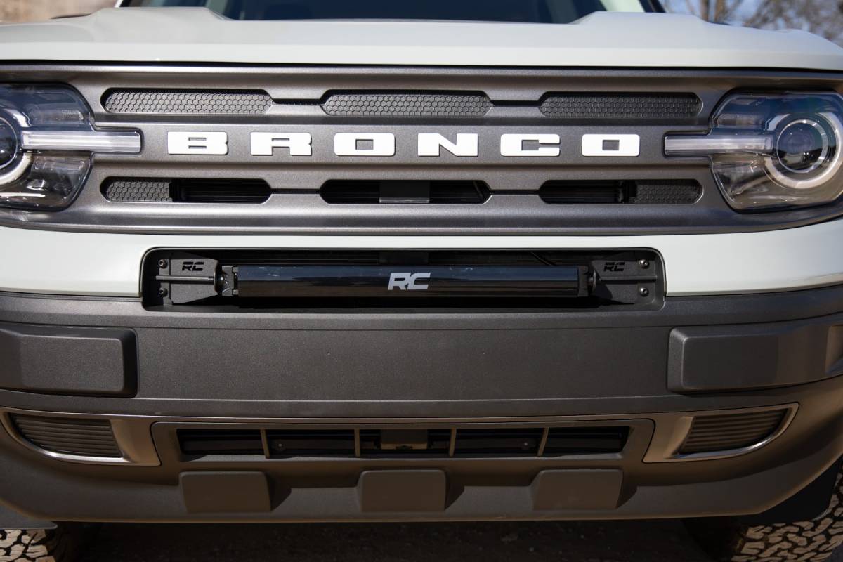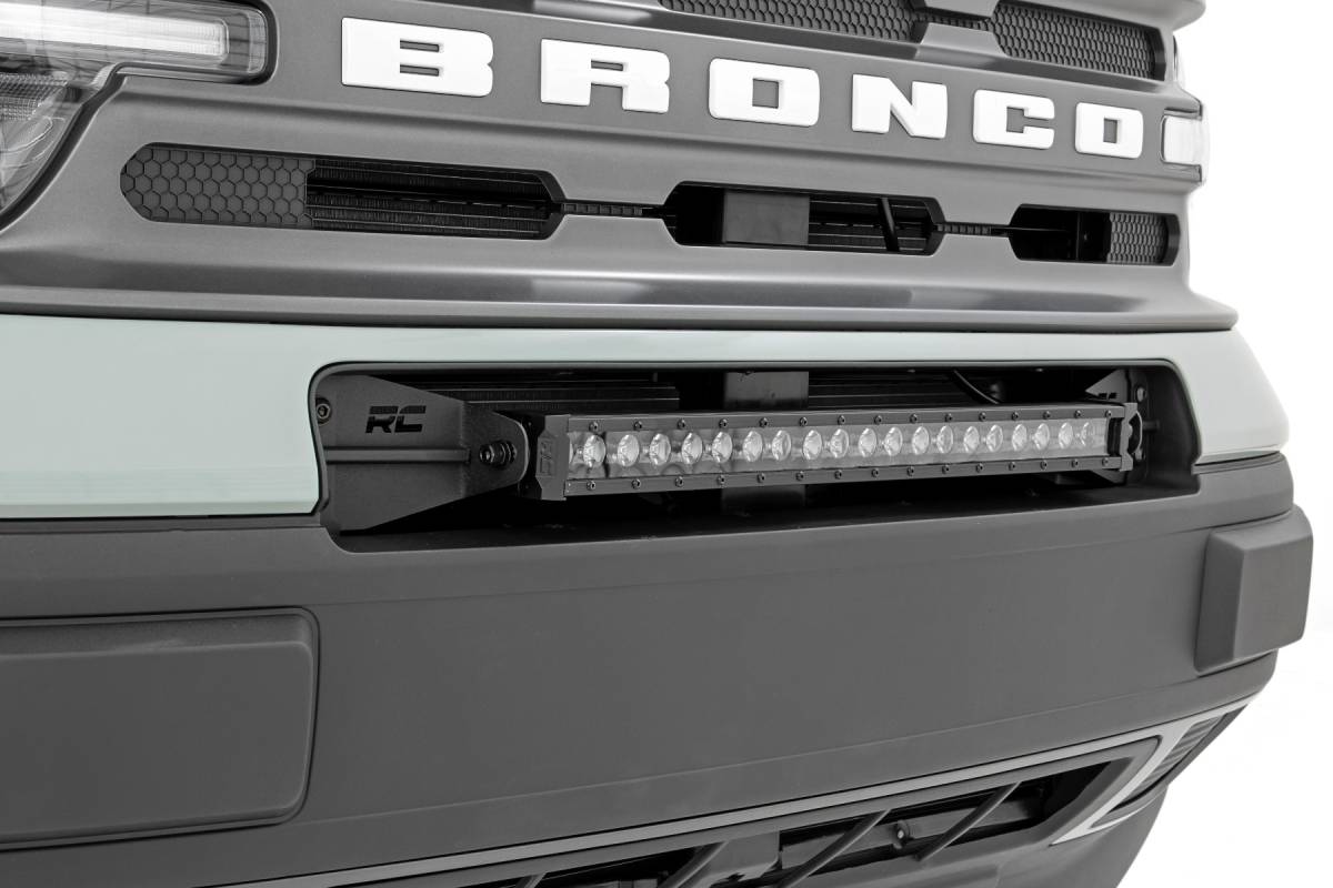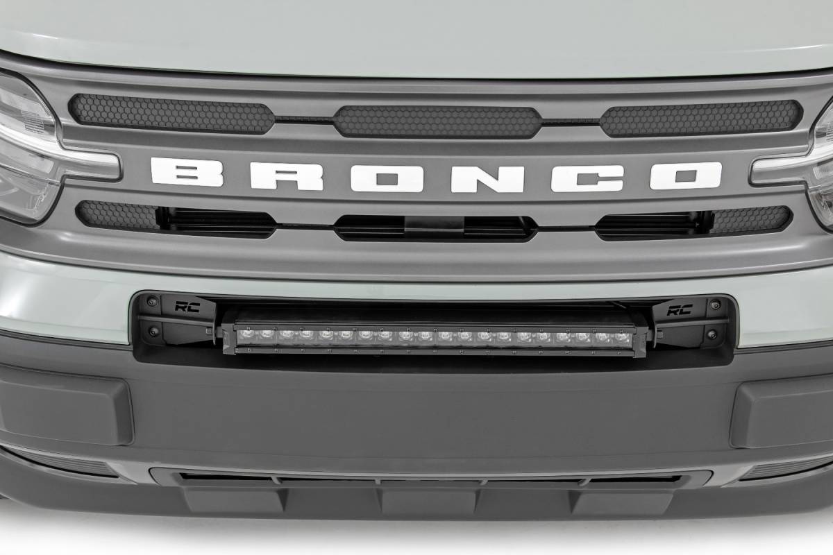Add LED lighting to your Bronco Sport quickly and easily with Rough Country's 20in Bumper LED Kit! This easy-to-install mounting system gives your 20-inch Single-Row LED Light bar a clean, flush look that fits in so well it might be mistaken for factory equipment. COMMAND THE DARK with this convenient, forward-facing lighting product that makes it easy to see the trail ahead, with powerful LED illumination provided by Rough Country's 20in Single Row LED Light Bar. Each kit includes your choice of Rough Country's Chrome-Series or Black-Series Light Bars with optional DRL capabilities for the exact look you desire. Best of all, this kit is easy to install making it easy to upgrade the front-end of your Bronco Sport with this impressive lighting system. Includes a 3-year warranty!