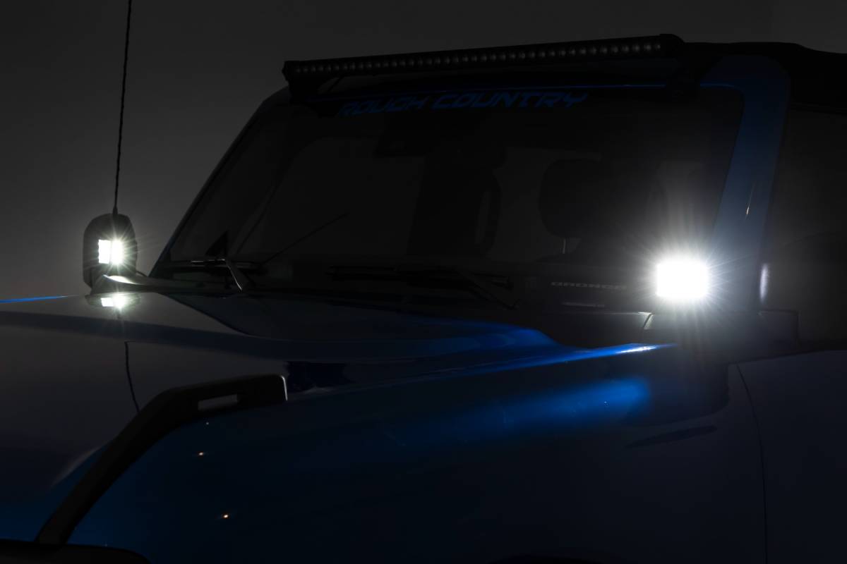 Rough Country's LED Ditch Lights for the Ford Bronco bring powerful side visibility to your off-road experience. Safely navigate the trails after dark, enhancing your safety and awareness without compromising the aesthetic of your vehicle. Customize Your Lighting Experience: Choose from a variety of lighting options to suit your needs! Rough Country's LED Ditch Lights for the Ford Bronco are available with the Black Series, Spectrum Series, OSRAM, Amber Lens, or DRL LED options, so you can tailor the setup to match your style and performance requirements. Whether you need a bold, sleek look or enhanced visibility in low-light conditions, there's a perfect option for every off-road enthusiast. Weather-Resistant Performance: Built with an IP67 waterproof rating, these LED lights are ready for any weather condition, offering reliable performance even in the harshest environments. Rugged and Durable Construction: The die-cast aluminum housing ensures long-lasting durability and superior protection against wear and impact, while the moisture breather technology keeps your lights clear and bright for longer. Complete Lighting Kit: Each kit includes a premium, flat-wound wiring harness with an on/off switch, offering ease of use and quality you can depend on. Heavy-duty 11 gauge steel brackets ensure solid, long-term support for your lights. Quick and Easy Installation: Enjoy a smooth installation process with minimal drilling required. This kit offers a seamless fit with only slight modifications needed to ensure it integrates perfectly with your vehicle. Engineered for Adventure: Whether you're cruising off-road at night or navigating through rough terrain, Rough Country's LED Ditch Lights for the Ford Bronco give you the confidence to conquer any adventure with clarity and style.