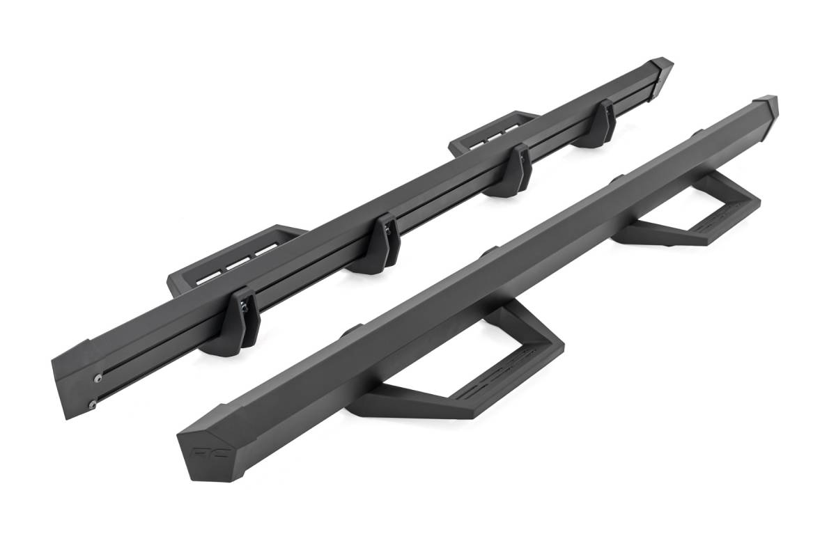 Lifted trucks are awesome, but getting in shouldn t feel like an extreme sport. Rough Country's SRL2 Steps deliver a solid, comfortable step up, making access to your ride easy and hassle-free. Say goodbye to awkward lunges and tricky maneuvers. The SRL2 Steps are engineered to simplify vehicle entry while adding a rugged, stylish touch to your truck. Whether you re on the trails or in the city, these steps are built to make life easier and your adventures smoother.Effortless Installation: Designed for a quick, no-fuss setup with all the necessary hardware included. You ll be road-ready in no time.Durable Powder-Coated Aluminum Rail: Built to withstand the harshest conditions with exceptional corrosion resistance and long-lasting performance.Heavy-Duty Powder-Coated Steel Brackets: Provides a secure, reliable mount to handle the roughest terrain and heavy use.Black Stainless Steel Zinc-Plated Hardware: Combines strength and style while resisting rust, ensuring your steps stay functional and sharp-looking for the long haul.Molded End Caps for Protection: Keep dirt, debris, and moisture out of the rail to maintain a cleaner, more polished look.Modular Design with Adjustable Step Placement: Fully customizable to fit your needs-position the steps exactly where you want them for easy, comfortable access.Ready to level up your truck? With Rough Country's SRL2 Steps, you ll enjoy reliable durability, unmatched convenience, and a bold look that fits any adventure.