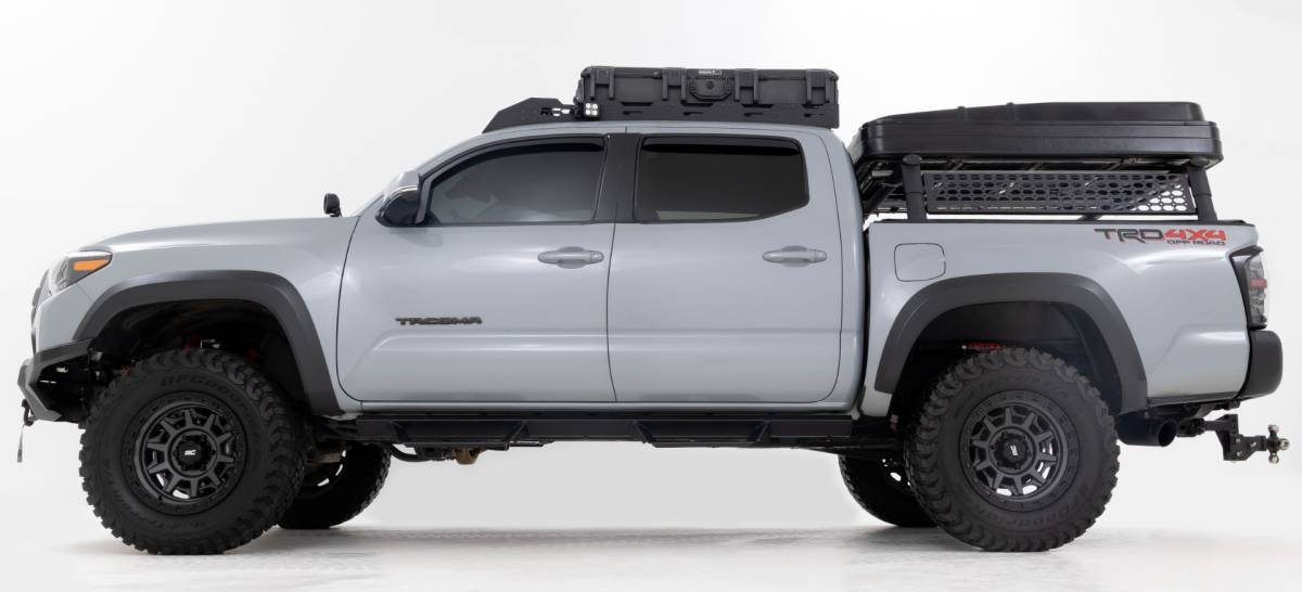 our bed rack is sure to turn heads and help you carry your gear wherever you need it. Installation and Warranty: This easy-to-install rack offers endless mounting options and adjustability, so you can customize it to suit your specific needs. It also retains rear visibility, making it the perfect choice for those who want to maintain a clear view while driving. Plus, it comes with Rough Country's Limited Lifetime Warranty, so you can rest assured that it's built to last. So, load up and hit the road with confidence, knowing that Rough Country has you covered. Upgrade your Tacoma Bed. The Tacoma Bed Rack from Rough Country gives you the flexibility to carry bulky cargo and outdoor equipment in your truck bed. It's just right for loading ladders, roof racks, bikes, and more with ease. And whether you're headed out for a camping trip or working under the sun on a job site, this bed rack keeps all your equipment close at hand. Durable Style: This innovative bed rack system is built from durable powder-coated aluminum for lightweight strength and durability. The modular design allows you to add as many crossbars as needed, and the molded end caps and T-slot covers give your truck that clean look you're looking for. Rugged enough to handle any payload you can throw at it