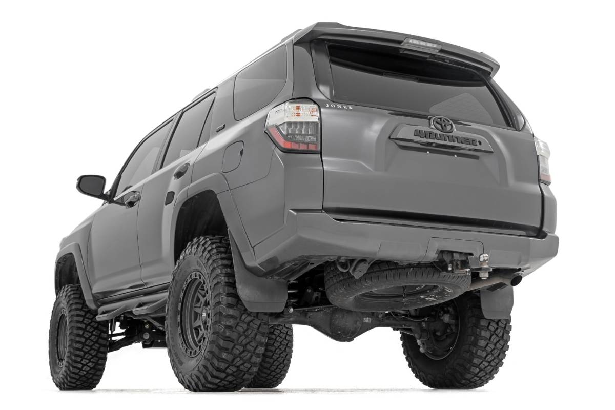 Superior Lift Solution. Looking to add some serious attitude to your Toyota 4Runner? Rough Country's 4.5-Inch Lift Kit is just what you need. This lift kit gives your 4Runner a meaner, lifted, and level stance while providing a smooth ride for unmatched highway and trail performance. It also adds room for larger wheels and tires, so you can make your truck stand out from the crowd. With excellent ride quality and handling characteristics on the road, this lift kit is the perfect way to take your Toyota to the next level. High-Quality Construction. Rough Country's 4.5-Inch Lift Kit for the 2015-2020 Toyota 4Runner makes it easy to gain that much-needed ground clearance and run up to a 33" tire for that aggressive look you want! Designed to provide excellent ride quality width and factory alignment specs, this kit boasts premium components, giving you a higher quality lift on your 4Runner. The high-quality components and innovative design provide the strength, stability, and up-travel you need to conquer almost any terrain. Installation and Warranty. Our 4.5-Inch Lift Kit is his all-inclusive kit is a total transformation for your SUV, with durable lifted knuckles, protective skid plate, and all the brackets and hardware needed to set your SUV to a factory-like geometry while providing additional ground clearance. When you purchase a Rough Country product, you get more than a great product at an affordable price. You also get peace of mind knowing that your purchase comes with a limited lifetime replacement warranty for manufacturer defects. With Rough Country's industry-leading warranty, you can be sure that your Rough Country lift kit is protected from structural and workmanship damage after the date of purchase.