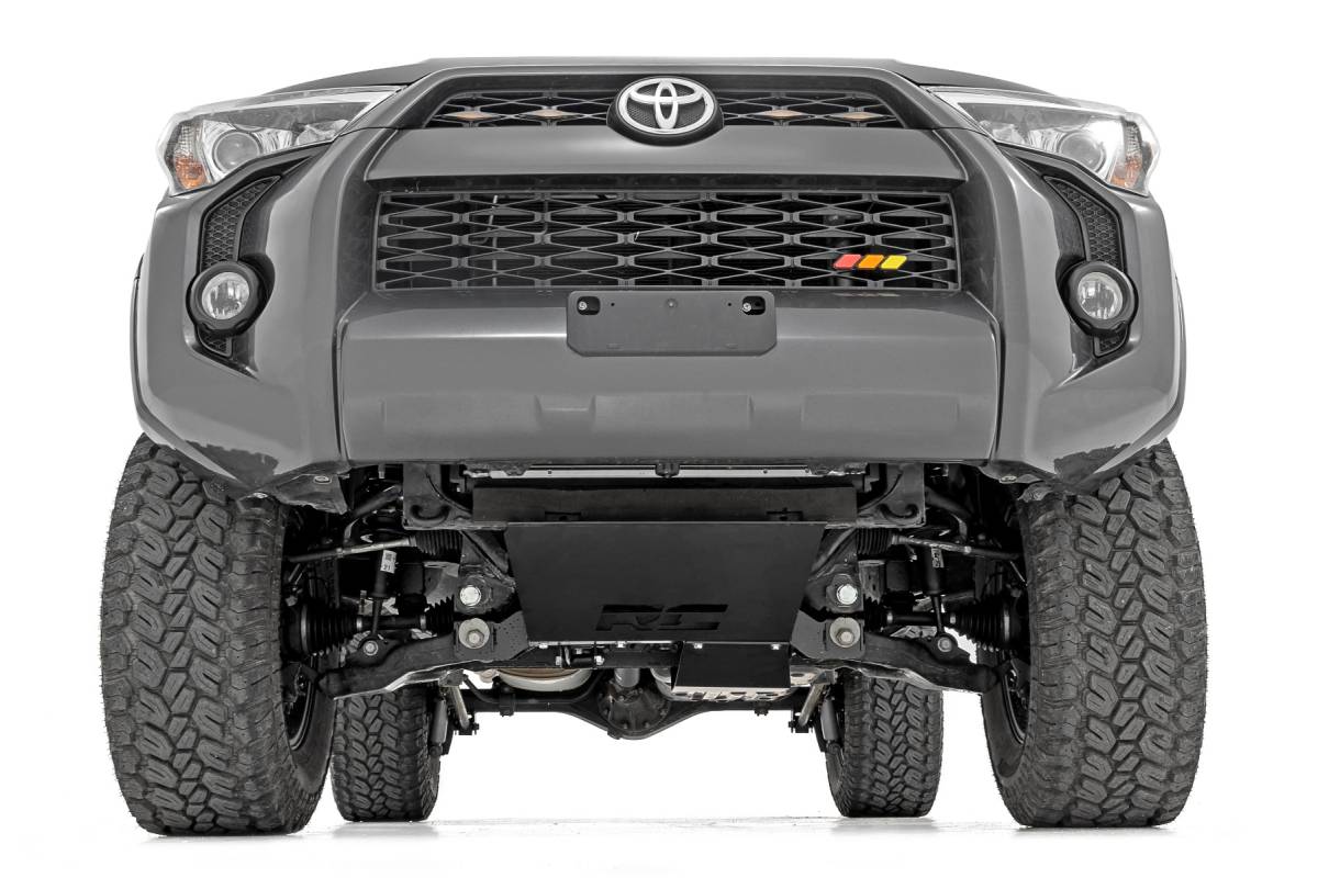 Superior Lift Solution. Looking to add some serious attitude to your Toyota 4Runner? Rough Country's 4.5-Inch Lift Kit is just what you need. This lift kit gives your 4Runner a meaner, lifted, and level stance while providing a smooth ride for unmatched highway and trail performance. It also adds room for larger wheels and tires, so you can make your truck stand out from the crowd. With excellent ride quality and handling characteristics on the road, this lift kit is the perfect way to take your Toyota to the next level. High-Quality Construction. Rough Country's 4.5-Inch Lift Kit for the 2015-2020 Toyota 4Runner makes it easy to gain that much-needed ground clearance and run up to a 33" tire for that aggressive look you want! Designed to provide excellent ride quality width and factory alignment specs, this kit boasts premium components, giving you a higher quality lift on your 4Runner. The high-quality components and innovative design provide the strength, stability, and up-travel you need to conquer almost any terrain. Installation and Warranty. Our 4.5-Inch Lift Kit is his all-inclusive kit is a total transformation for your SUV, with durable lifted knuckles, protective skid plate, and all the brackets and hardware needed to set your SUV to a factory-like geometry while providing additional ground clearance. When you purchase a Rough Country product, you get more than a great product at an affordable price. You also get peace of mind knowing that your purchase comes with a limited lifetime replacement warranty for manufacturer defects. With Rough Country's industry-leading warranty, you can be sure that your Rough Country lift kit is protected from structural and workmanship damage after the date of purchase.