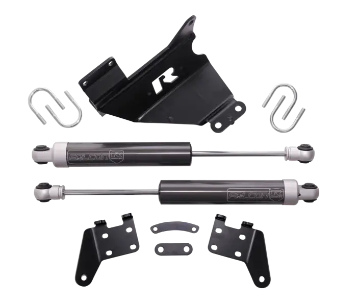 Own the road and the trail with the all-new ReadyLIFT Falcon-Equipped Dual Steering Stabilizer Kits PN 77-13220, engineered exclusively for 2013–2026 Ram 2500/3500 HD 4WD trucks. Built for truck owners who demand more than factory performance, these kits deliver unmatched steering control, comfort, and confidence—no matter where your Ram takes you. Dramatically reduces steering vibration and shimmy from larger wheels and tires. FEATURES & BENEFITS Requires a minimum 5.75" wheel backspacing for proper clearance (not compatible with factory wheels). Bolt-on installation – no permanent modifications needed. Delivers sharper steering response and improved road feel. And let's be honest, they look incredible. With the aggressive Falcon setup front and center, your Ram HD not only drives better but looks the part, too. Designed with heavy-duty, trail-proven mounting hardware, ReadyLIFT® stabilizers are built to take a beating and keep you in control. Installation is a breeze, no cutting, welding, or special tools required, so you can bolt on performance and get back to driving. Includes dual Falcon Series steering stabilizers for superior damping performance. Compatible with stock, leveled, or lifted Ram HD trucks. Take your Ram HD to the next level—stronger, smoother, and more controlled. ReadyLIFT Falcon Dual Steering Stabilizers — because your truck deserves performance that looks as good Thanks to Falcon's advanced steering stabilizer technology, you'll feel the difference instantly. Tighten up your steering response, tame those big off-road tires, and smooth out every bump, rut, and dip. Whether you're towing heavy, tackling rough terrain, or cruising the highway, this system keeps your Ram HD stable, precise, and in command.