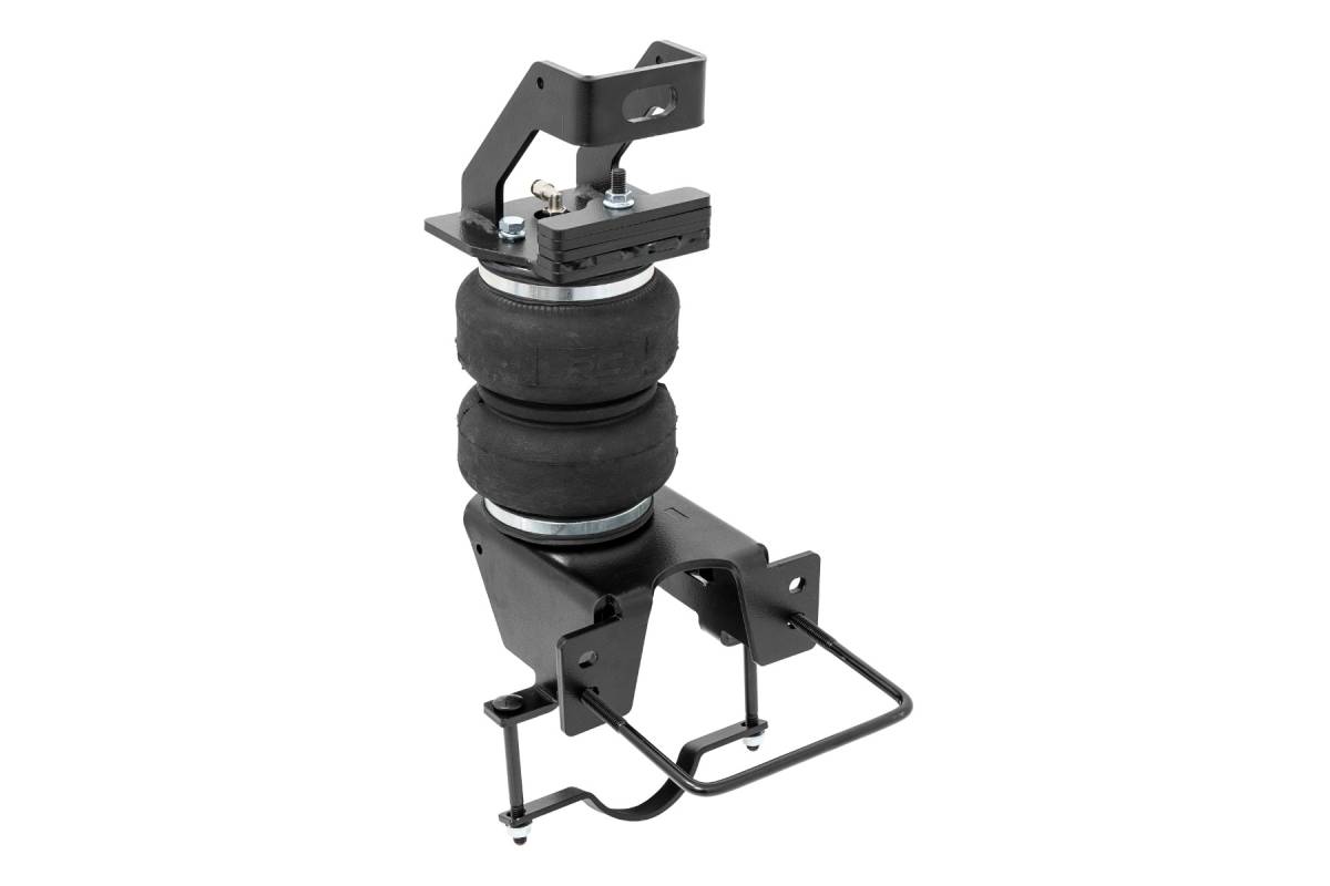 Ideal Leveling: Is your truck your workhorse? The main attraction of a pickup is the ability to haul and tow as needed. However, due to the weight in the bed or the condition of the rear leaf springs, your vehicle may become un-level under load. At Rough Country, we've designed a solution to eliminate these concerns. Introducing Rough Country's Rear Air Spring Kit. Heavy-Duty Construction: Rough Country's Rear Air Spring Kit includes two high-quality, double convoluted air bags, reinforced with durable powder-coated steel brackets and DOT-approved airlines. Whether you're towing a trailer or hauling heavy loads, this kit helps ensure your vehicle remains level, alleviating the strain on your trailer's tongue weight. The kit features 1/4" push-to-connect air fittings for easy installation, along with all necessary bracketry for a secure fit. Rough Country's Air Spring Kit supports up to 5,000 lbs. of load, minimizing sway and preventing bottoming out while braking and steering. Easy Installation: Quick and simple setup for immediate use. Rough Country's kit can be installed at home with standard tools in just 5-6 hours, ensuring minimal downtime and fast, hassle-free installation. Onboard Air Compressor and Wireless Controller: For added convenience, Rough Country offers an optional onboard air compressor and wireless controller to easily adjust your air spring kit on the go. Control air pressure at the push of a button from the comfort of your vehicle. Reliable Warranty Coverage: Rough Country's Rear Air Spring Kit includes a limited lifetime warranty on the air springs and a two-year replacement warranty on the compressor, offering lasting protection against manufacturer defects. This industry-leading coverage ensures confidence in both quality and durability, so you can count on Rough Country to keep your truck performing at its best.