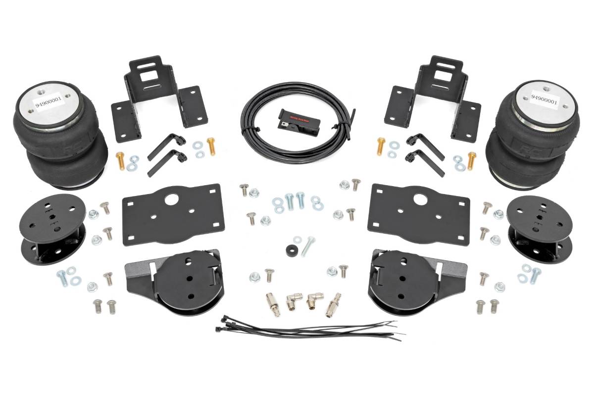 Ideal Leveling. Is your truck your workhorse? The main attraction to the pick-up line is the accessibility to haul and tow as desired. However, due to the amount of weight in the bed, or the condition of the vehicle's rear leaf springs, this can cause the vehicle to be un-level when under load. Here at Rough Country, we created an innovative new product to ensure that these are troubles of the past. Introducing, Rough Country's Rear Air Spring Kit. Heavy-duty Construction. Rough Country's Rear Air Spring Kit features two RC branded high-quality double convoluted airbags complemented with DOT-approved airlines. Whether you plan on towing or hauling in the not-so-distant future Rough Country's Air Spring kit is the must-have accessory to ensure that your trailer is level reducing the weight off of the tongue of your trailer. Each kit offers 1/4" push connector fittings and all of the bracketry needed to ensure installation is lightning fast and secure! Rough Country's Air Spring kit provides up to 5,000 lbs. of load support to ensure that you experience less sway and bottoming out when braking and steering! Installation. With an estimated timeframe of 1-2 hours this full kit can be installed at home using standard tools and can be completed efficiently and quickly! Limited Lifetime Replacement Warranty. Rough Country's Rear Air Spring Kit is backed with a limited-lifetime replacement warranty towards manufacturer defects. As such, the product is protected from structural and workmanship damage after the date of purchase. With our industry-leading warranty give yourself peace of mind when using Rough Country's Suspension products!