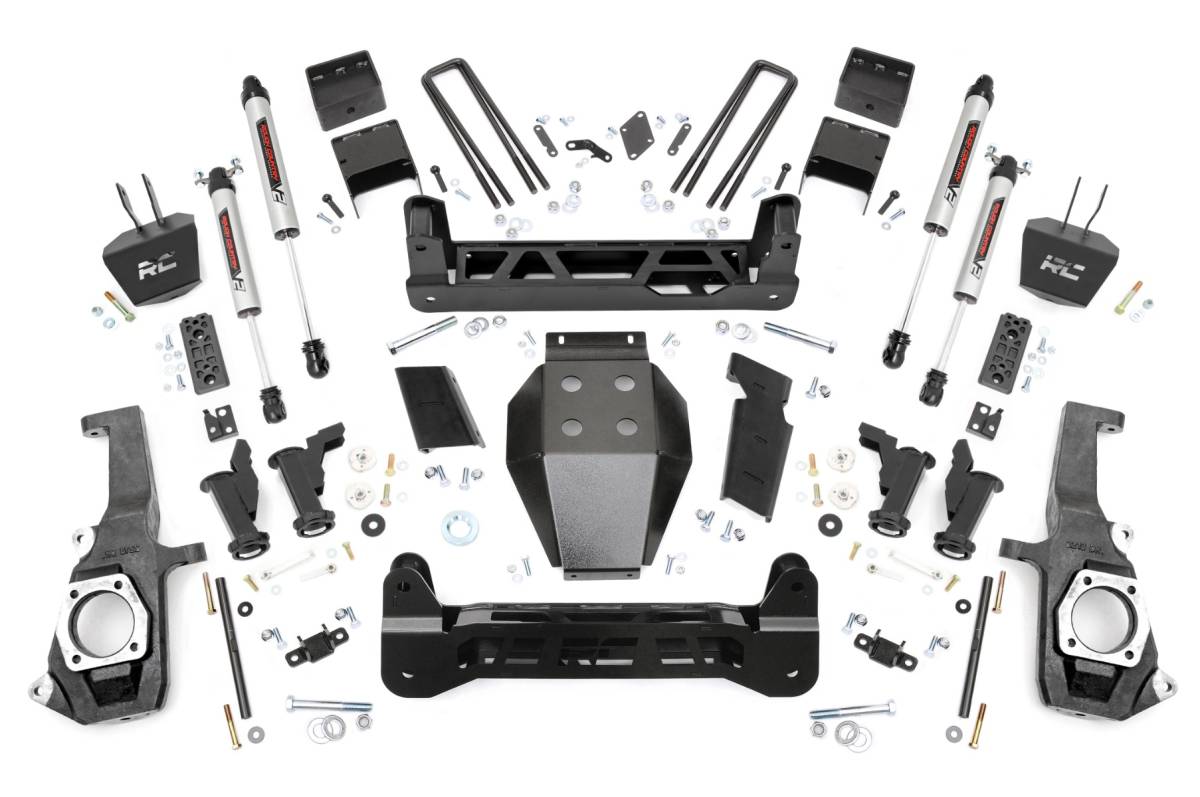Straight from the lot, the GM 2500HD/3500HD boasts an aggressive stance and sleek design. Inspired by its bold presence, Rough Country developed a suspension kit that enhances its performance without compromising its sharp aesthetics. The 7.5" Suspension Lift for GM 2500HD/3500HD incorporates a Torsion Drop Design that improves ride quality and handling while maintaining factory angles for a smooth, balanced drive. Torsion Drop Design: Provides improved ride quality and handling, while preserving factory angles for a smooth and controlled drive. Heavy Duty Components: Features 1/4" thick steel crossmembers, Torsion Bar Drop Brackets, and a rugged skid plate all laser-cut and powder-coated in "Hammer Black" to match factory components. No Drilling or Differential Modifications Required: Install with ease, no invasive modifications needed to maintain the integrity of your truck. Precision Fitment: Designed to preserve the factory ride feel and handling without widening the track width, ensuring your GM 2500 HD stays sharp around corners. Customizable Shock Options: Choose from a range of high-performance shock options, including our nitrogen-charged N3 shocks, V2 monotube shocks, M1 monotube shocks, and adjustable Vertex shocks. The power to select the right shock series for your needs is in your hands. Rough Country's 7.5" Suspension Lift doesn't t just look like it came off the showroom floor it feels like it too. Achieve the perfect balance of strength, style, and smooth handling with this innovative lift kit, designed specifically to complement your GM 2500HD/3500HD.