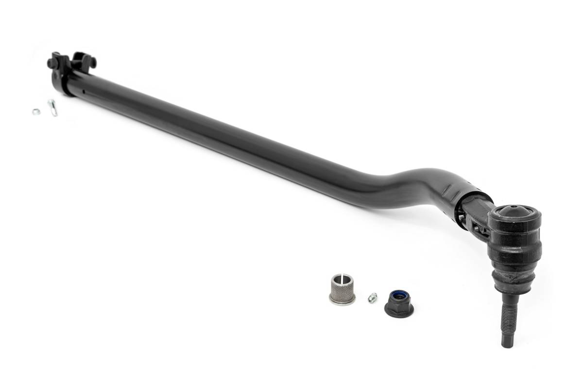 Superior Handling and Performance. Give your steering setup incredible durability and improve your suspension geometry with Rough Country's High Steer Kit for Jeep JL/JT models. At stock height, your vehicle's drag link and track bar sit parallel. The more you lift your Jeep, the further your track bar and drag link drift apart. This differentiation can cause bump steer during suspension travel. Rough Country's JL/JT High Steer Kit resets these two components back to an optimum, factory-like angle. Durable Construction and Design. Rough Country's JK High Steer Kit features a massive 1.5in DOM tube design and fully greaseable tie rod end that s considerably larger than stock and ready to tackle any terrain. Featuring a high sweeping angle and optional track bar bracket, this solution promotes better handling and steering without adding additional stress to your steering box. Installation. With minor drilling required, an estimated timeframe of 2-3 hours is predicted to complete this installation. Limited Lifetime Replacement Warranty. Rough Country's High Steer Kit is backed with a limited lifetime replacement warranty towards manufacturer defects. As such, the product is protected from structural and workmanship damage after the date of purchase. With our industry-leading warranty give yourself peace of mind when using Rough Country's Suspension products!