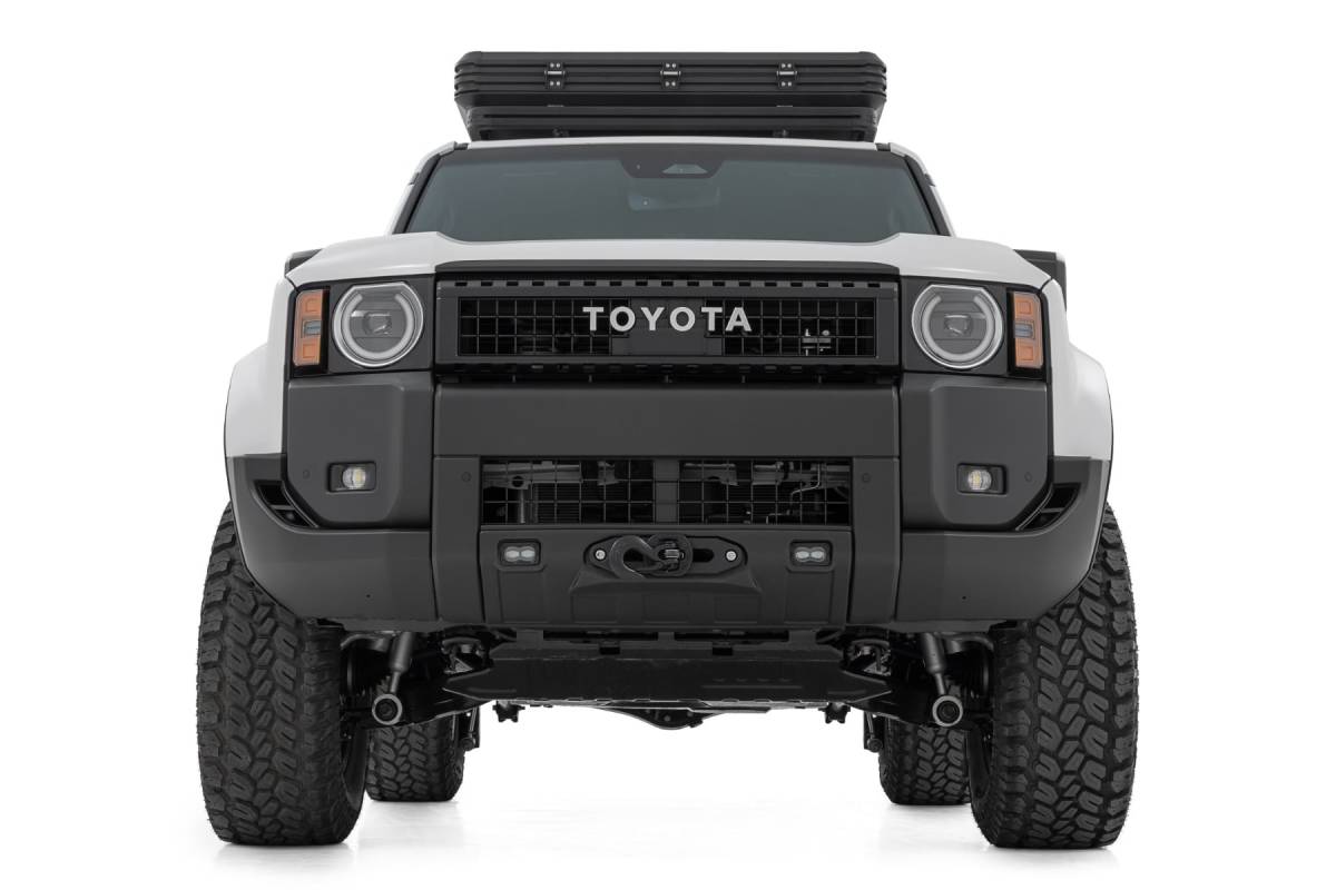 Hidden Strength, Visible Performance: Upgrade your Toyota Land Cruiser with Rough Country's Hidden Winch Mount Kit, delivering discreet power, rugged durability, and a clean, factory-style finish. Perfect for off-road recovery without compromising style. Stealthy Winch Integration: Designed for Rough Country's PRO9500S and PRO12000S winches, this hidden winch mount keeps recovery power tucked behind the front fascia for a streamlined, low-profile appearance. Heavy-Duty Winch Tray: Built from 7-gauge steel, the winch tray delivers uncompromising strength and structural integrity, ensuring reliable performance in high-stress recovery situations. OEM-Style Front Fascia: A new front fascia replaces the factory unit, maintaining a clean, seamless look while concealing the winch system without compromising your Land Cruiser's refined design. Engineered with an integrated fairlead opening, this fascia eliminates the need for any external cosmetic cutting or trimming, delivering a factory-quality appearance with built-in provision for proper fairlead installation. Integrated SAE LED Lighting Included: This kit includes Rough Country's 3"x1.75" Black Series SAE fog lights, providing enhanced visibility and a clean, factory-style integration. Choose between crisp White SAE output (4800 lumens per pair) for maximum clarity or bold Yellow SAE output (4000 lumens per pair) for improved visibility in dust, fog, and adverse weather conditions. Lights are included and sold in pairs, allowing you to select the output that best fits your driving needs. Hassle-Free Installation: Bolt-on structural design ensures a straightforward install, using factory mounting points for a secure, no-fabrication fit. Rough Country's Hidden Winch Mount Kit for the Toyota Land Cruiser is the ultimate low-profile solution for trail-ready capability, combining stealth, strength, and functionality in one clean package.